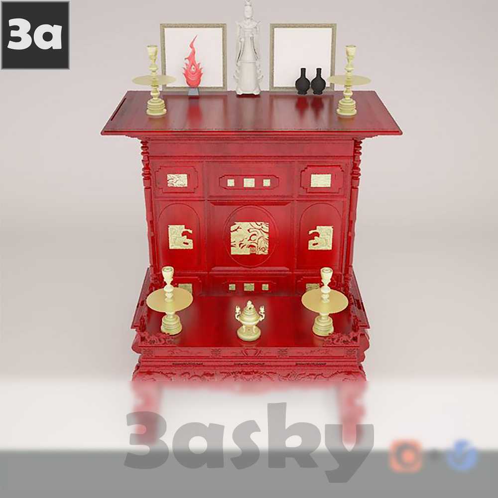 This 3D model preview showcases a detailed and realistic representation of a traditional altar table. The model is suitable for interior design projects, architectural visualization, and more. Download this high-quality 3D model to enhance your creative projects.