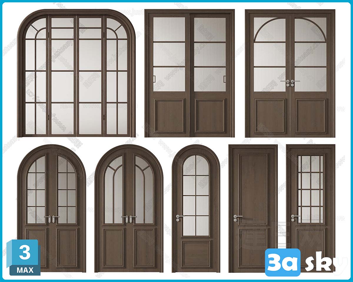 V_法式双开门复古门拱形门单开门卧室门3d模型ID-14357081.rar