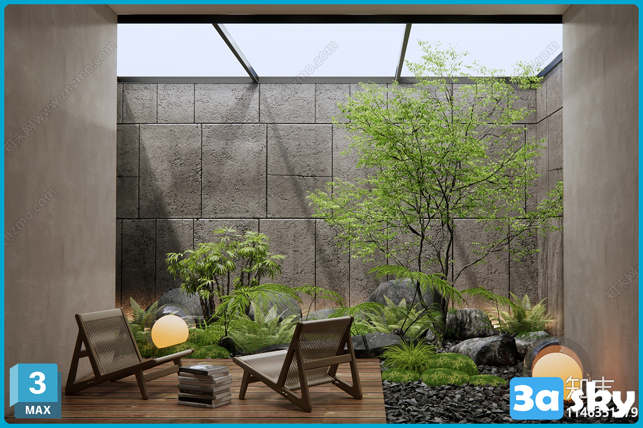V_VR现代居家庭院_天井景观造景_庭院小品_植物组合_景观植物_石头_苔藓_休闲椅3D模型ID_1146351779.zip