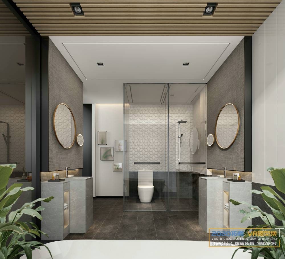 This 3D scene showcases a modern bathroom design created with 3DS MAX. The scene features high-quality textures and detailed elements, perfect for interior design and architecture projects. Explore the intricate details and realistic rendering of this modern bathroom setting.