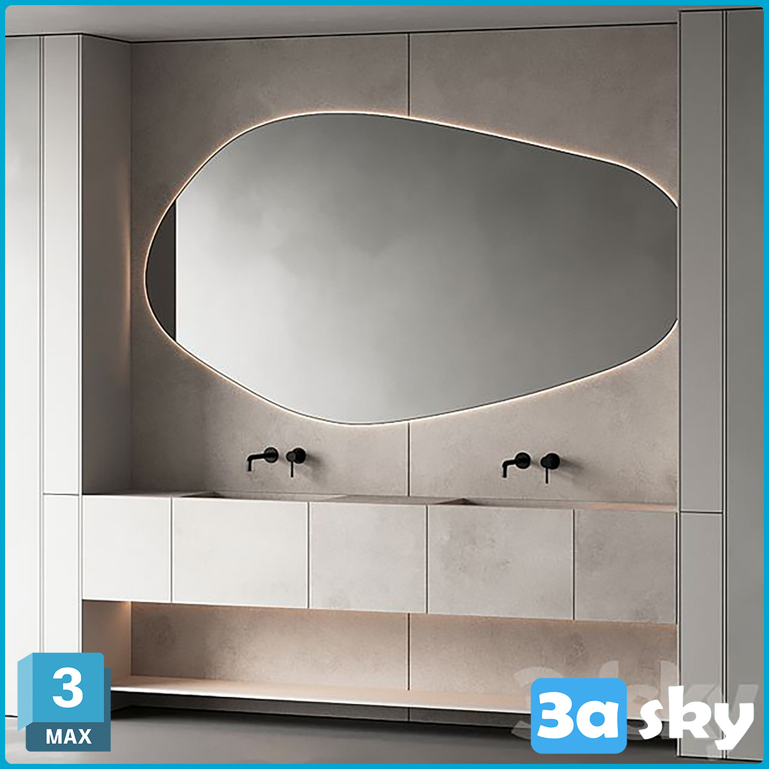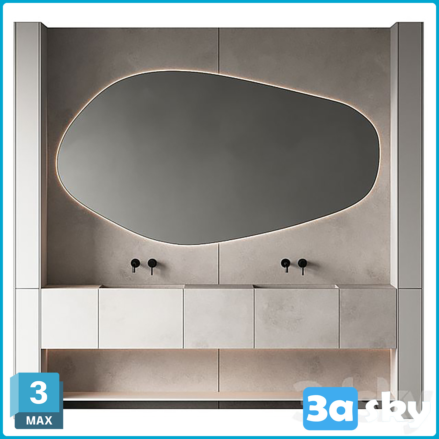 This 3D scene showcases modern bathroom furniture designed in 3DS MAX. The preview gives a glimpse of stylish and functional furniture pieces suitable for contemporary bathrooms.