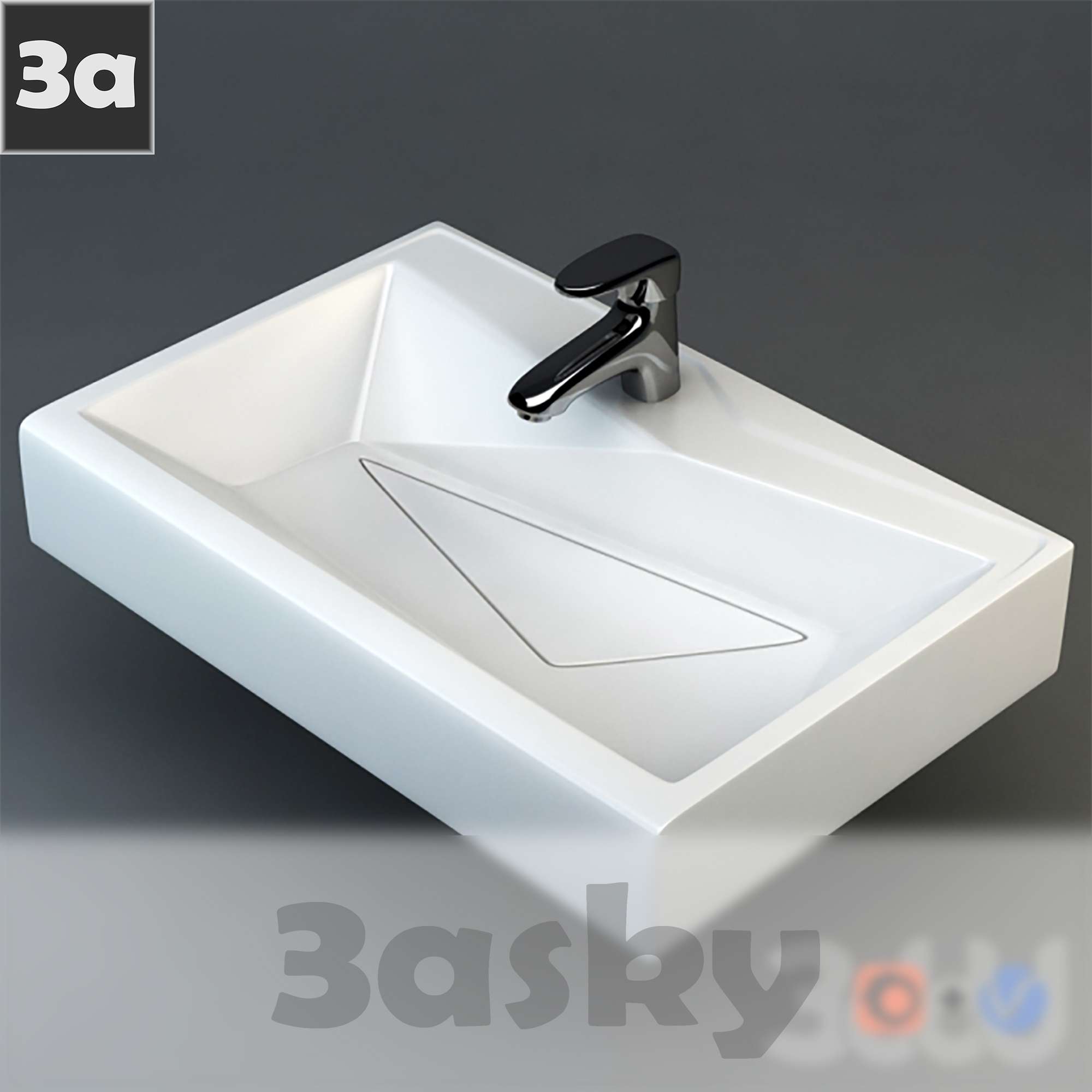 This 3D model showcases a modern bathroom sink design with a geometric sink and faucet. The design is sleek and contemporary, perfect for a stylish bathroom or WC. Explore the intricate details of the sink and faucet in this preview image.