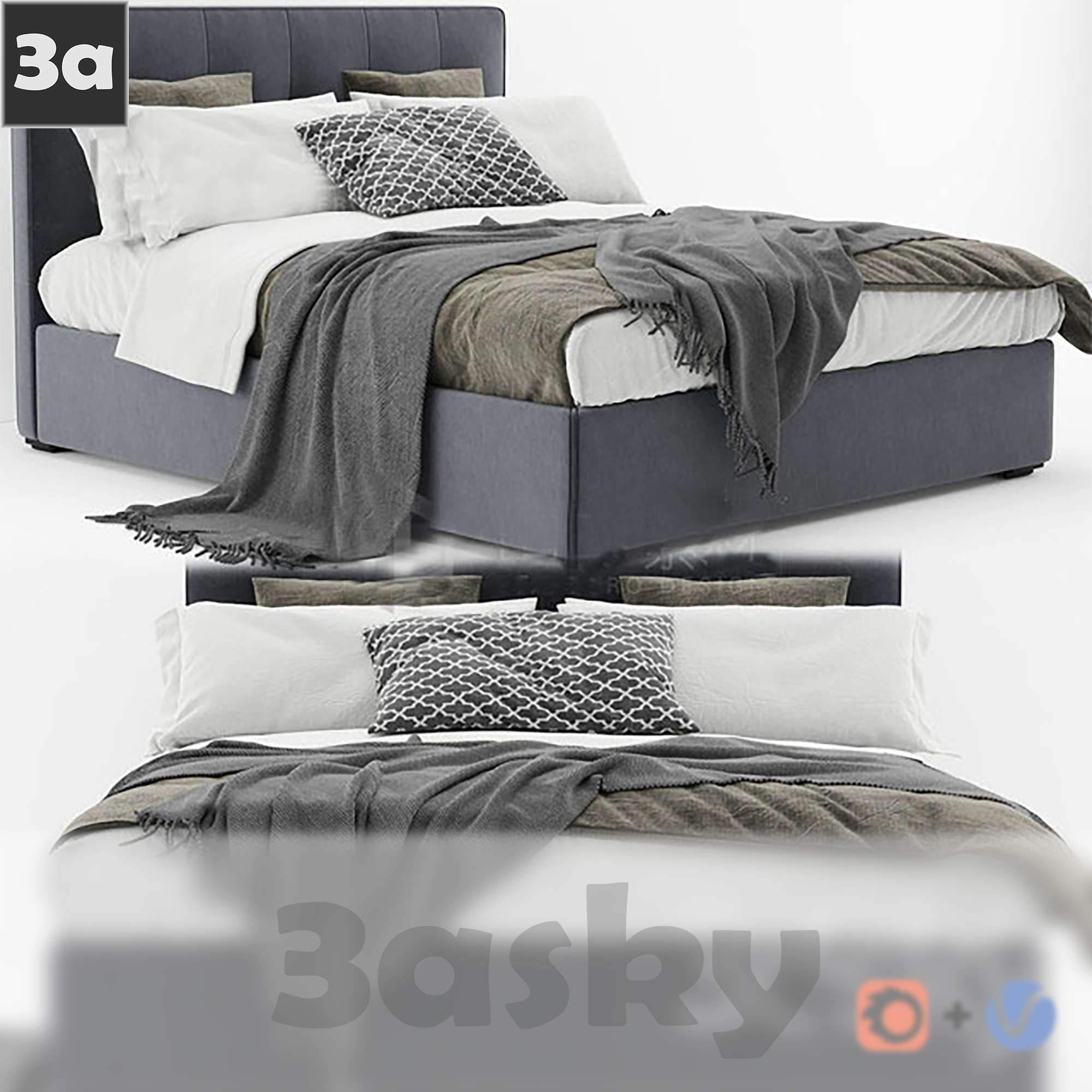 This 3D model showcases a modern bed designed for interior design and architectural visualization projects. The detailed rendering and realistic textures make it a perfect addition to any modern bedroom scene. Created using 3DS MAX software, this furniture model is ideal for professionals in the design industry looking to enhance their projects with high-quality assets.