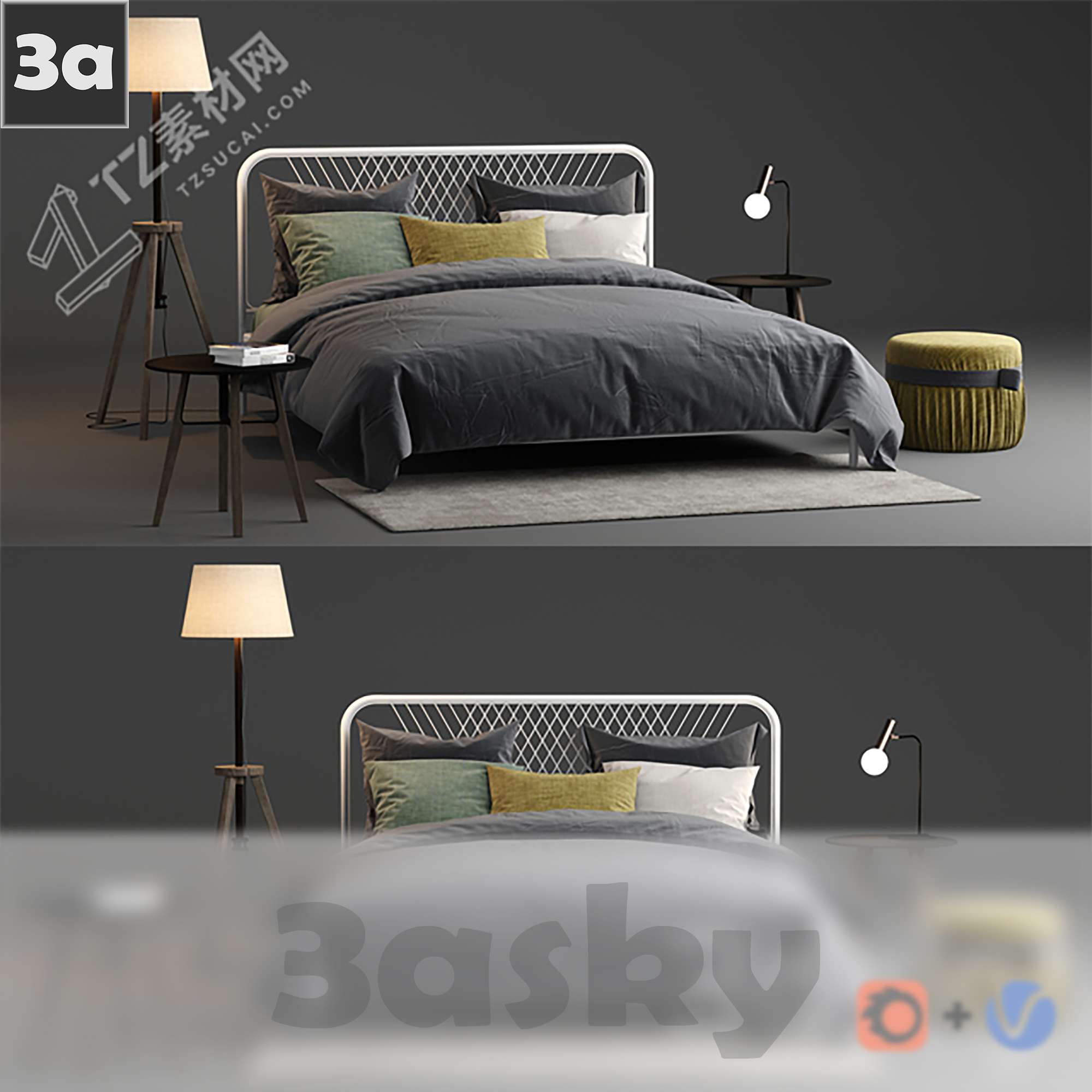 This 3D model showcases a modern bed designed with attention to detail. It is created using 3DS MAX/FURNITURE software, making it ideal for interior design projects. The model features sleek lines and a contemporary design, perfect for adding a touch of elegance to any virtual space.
