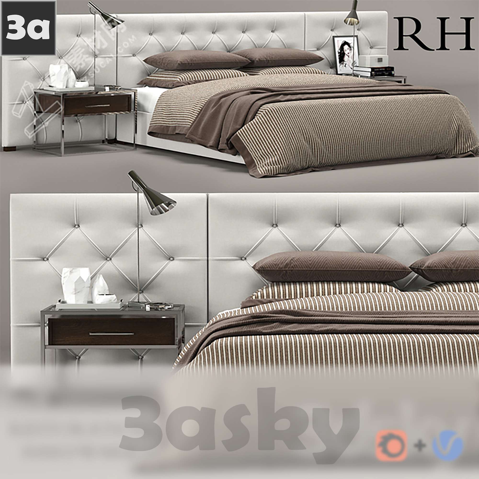 This 3D model showcases a modern bed designed for interior design and architectural visualization projects. The model is created with attention to detail and is suitable for various design applications. Enhance your projects with this high-quality 3D furniture model.