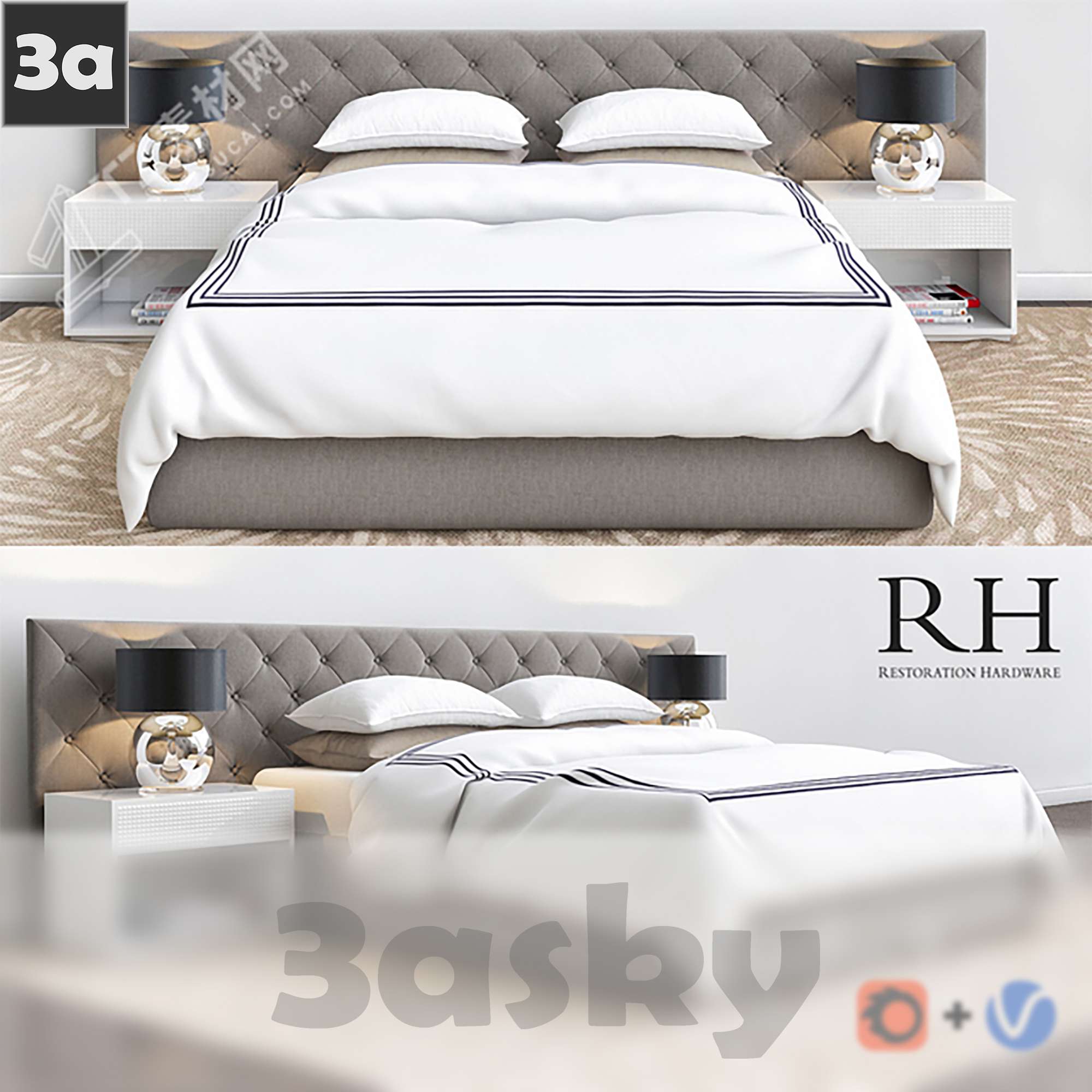This 3DS MAX furniture model features a modern bed design suitable for interior design projects. The high-quality 3D rendering provides a realistic representation of the furniture piece, allowing for easy integration into various design concepts.