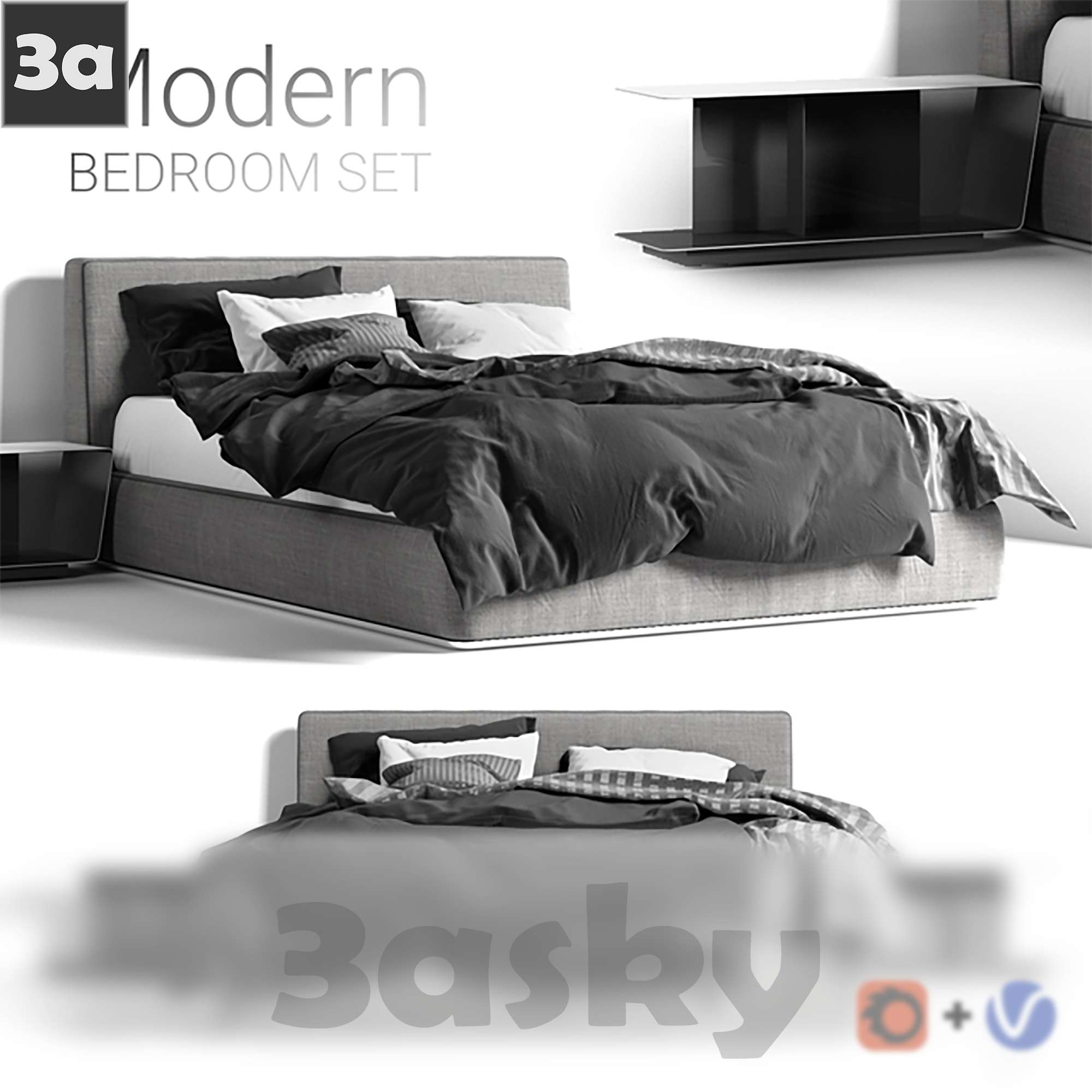 This 3D furniture model features a modern bed, suitable for interior design and architectural visualization projects. The high-quality rendering showcases the details and design of the bed, making it a versatile asset for various creative projects.