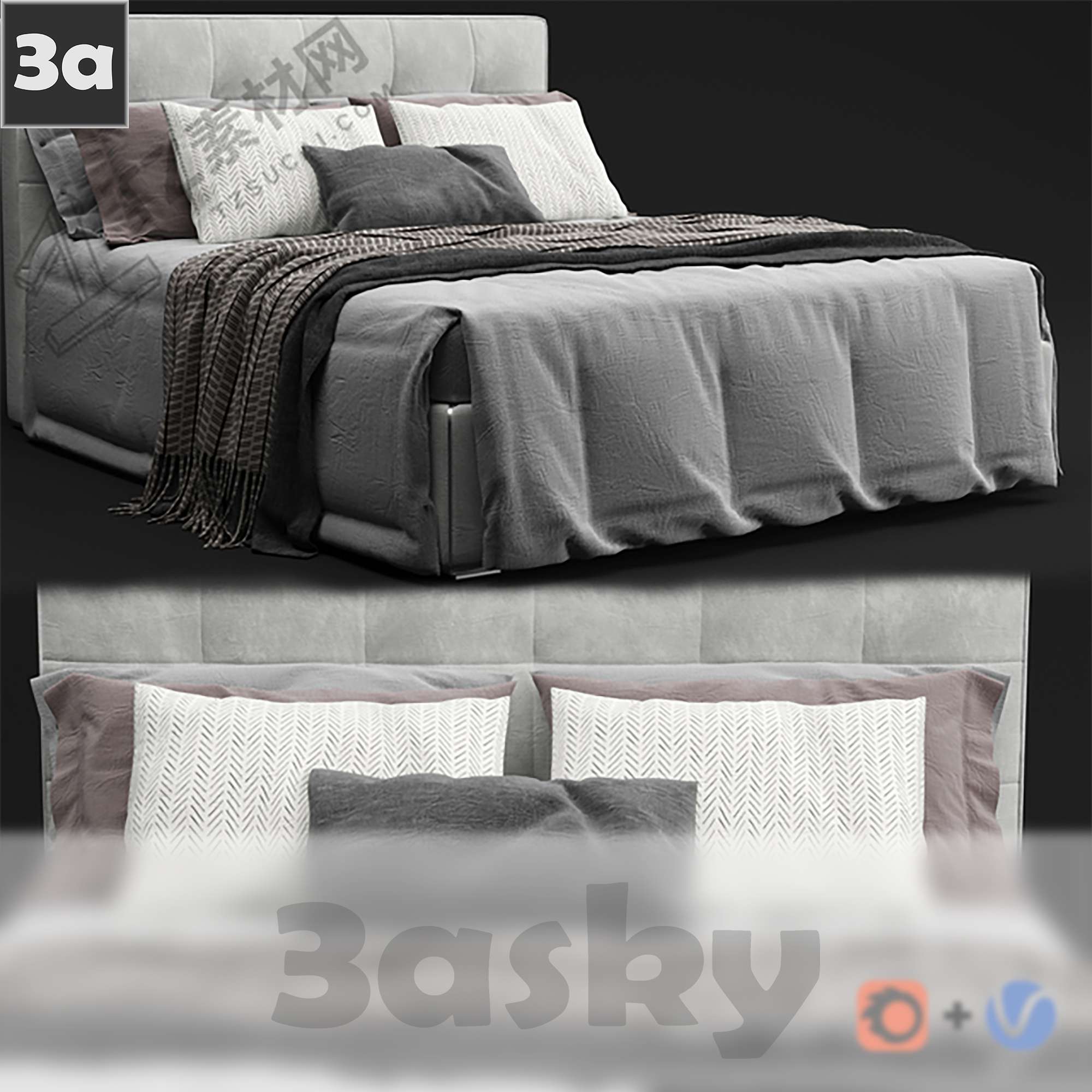 This 3D model showcases a modern bed designed for interior design and architectural visualization projects. The detailed design and realistic textures make it a perfect addition to any 3D scene. Created using 3DS MAX software, this furniture model is ideal for professionals in the design and architecture industry.