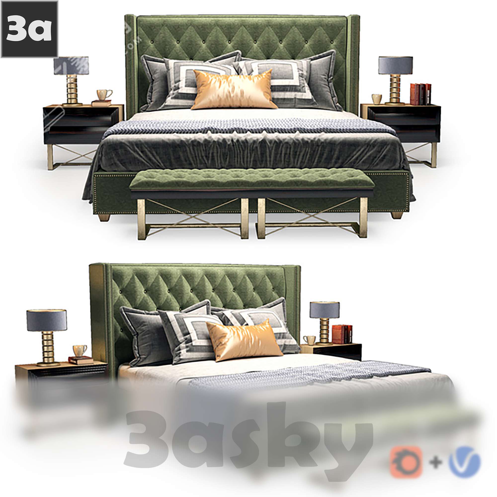 This 3D model showcases a modern bed designed in 3DS MAX. It is a high-quality representation suitable for interior design projects. The model features intricate details and realistic textures, making it a valuable asset for architects, designers, and 3D enthusiasts. Enhance your visualizations with this stunning modern bed 3D model.