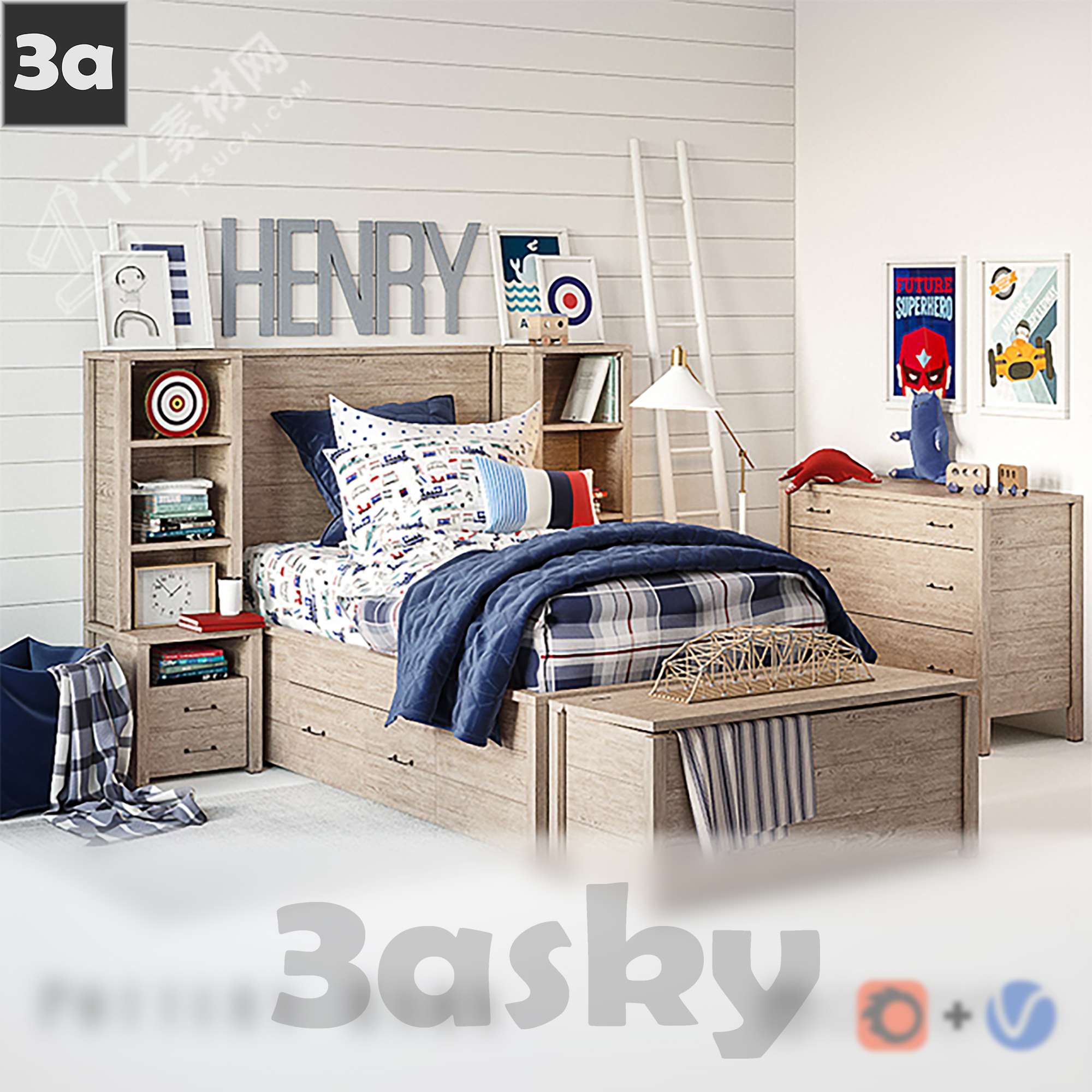 This 3D model showcases a modern bed designed for interior design and architectural visualization projects. Created using 3DS MAX software, this high-quality model is perfect for adding a touch of elegance to your virtual spaces. The detailed design and realistic textures make it ideal for showcasing bedroom furniture in a realistic setting. Enhance your design projects with this stunning modern bed 3D model.