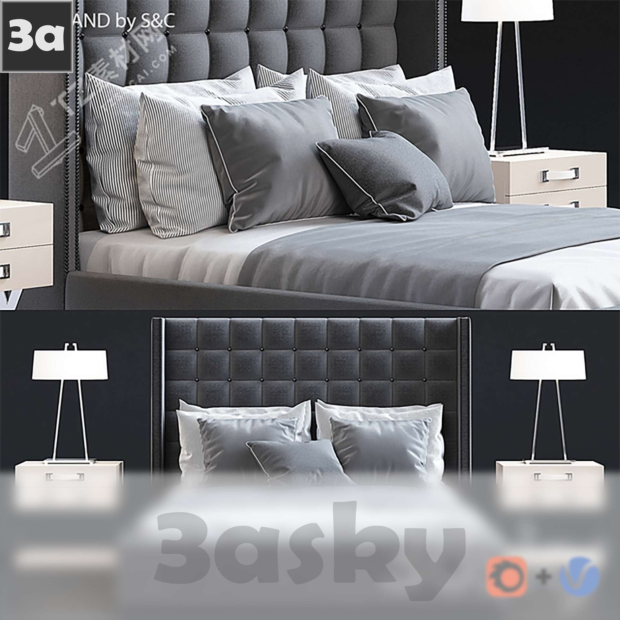 This 3D model showcases a modern bed designed in 3DS MAX. The model is high-quality and suitable for various interior design projects. It features sleek lines and a contemporary design, making it a versatile addition to any virtual space.