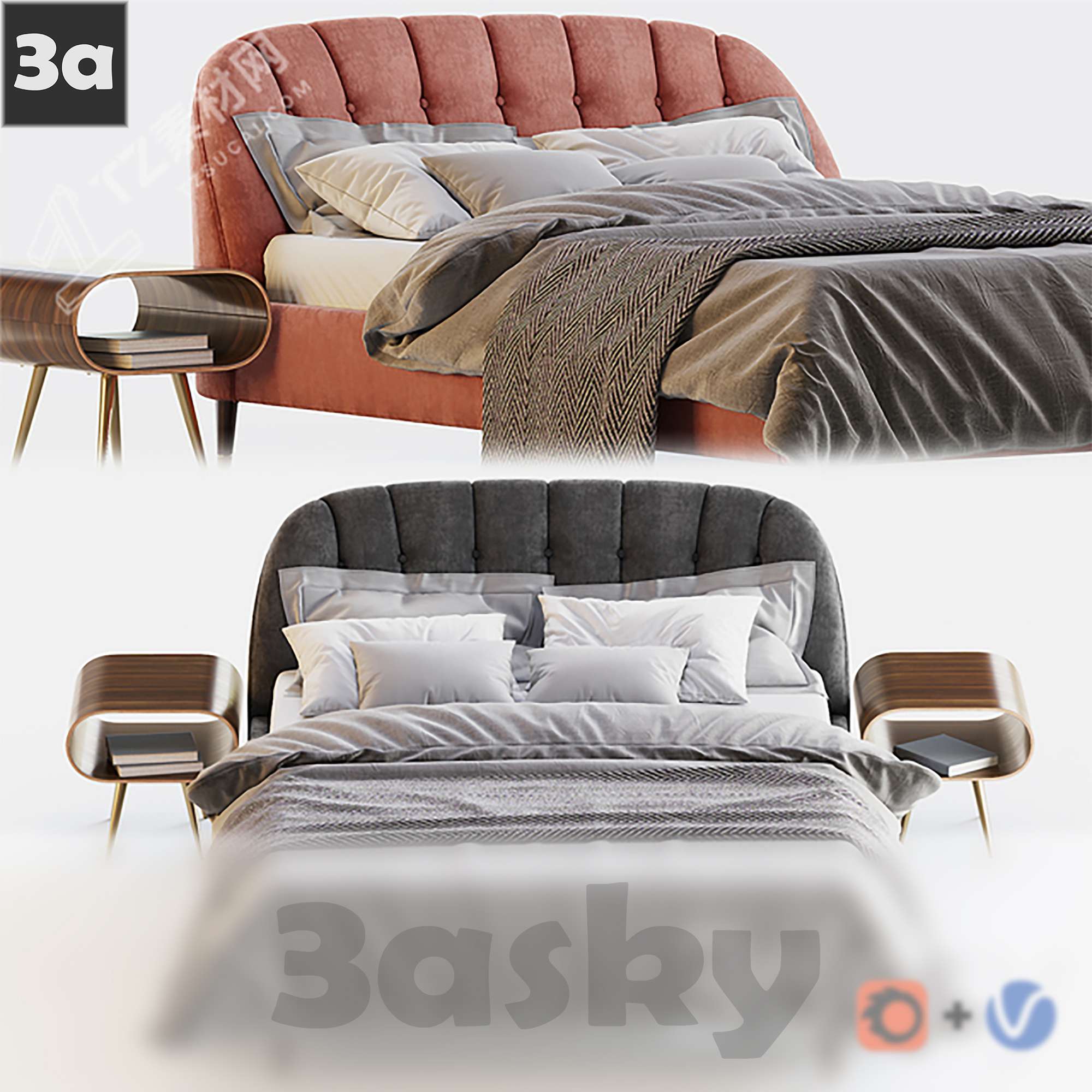 This 3DS MAX furniture model features a modern bed design suitable for interior design projects. The high-quality 3D rendering provides a realistic representation of the furniture piece, ideal for architectural visualization and design purposes.