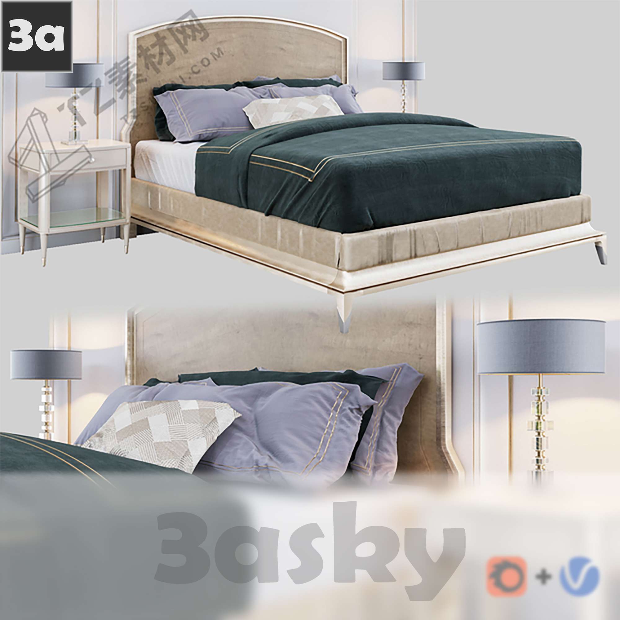 This 3D model showcases a modern bed designed in 3DS MAX. It is a high-quality furniture piece suitable for interior design projects. Download this free model to enhance your design visualization and rendering capabilities.