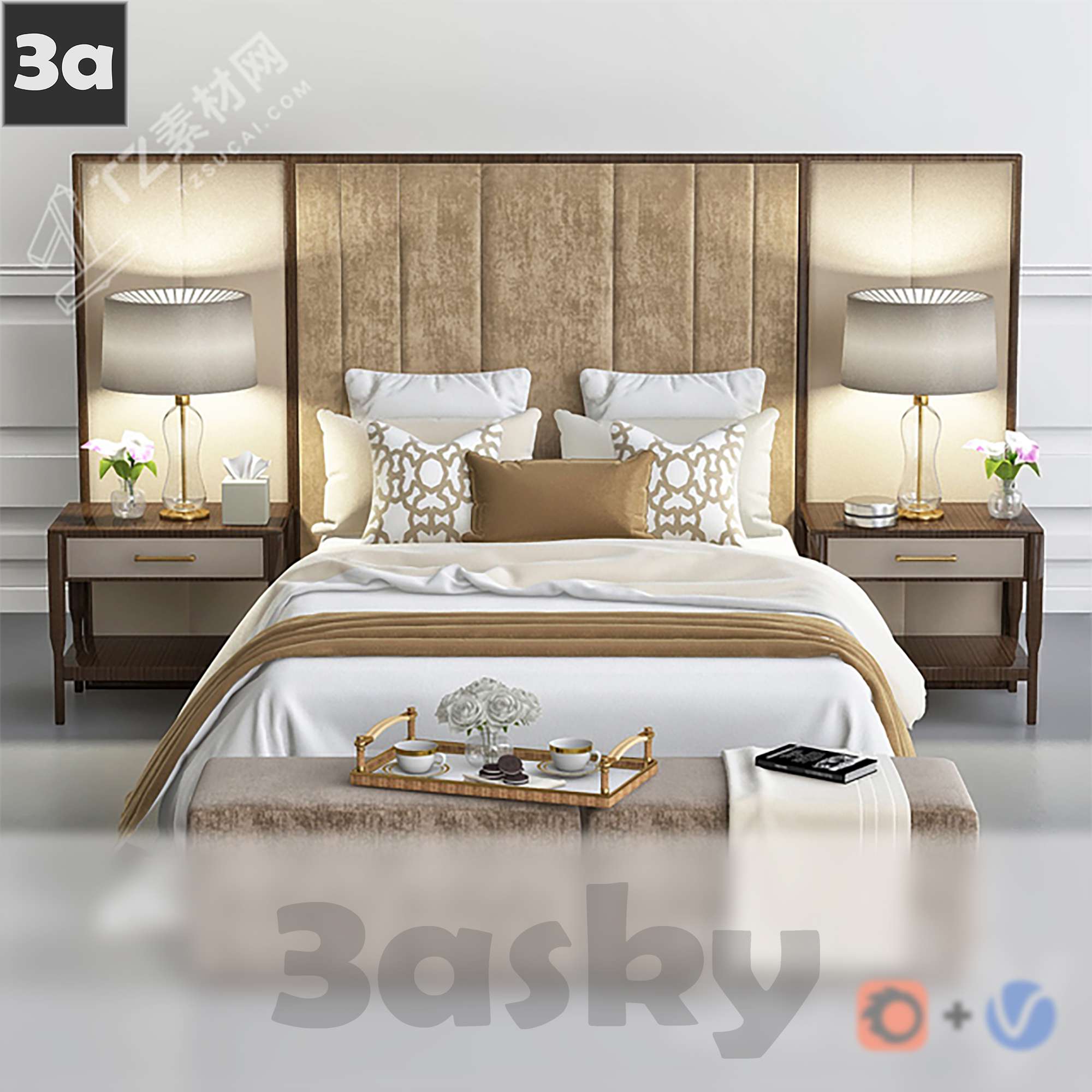 This 3D model showcases a modern bed designed for interior design and architectural visualization projects. The detailed rendering and realistic textures make it a perfect addition to any modern bedroom scene. Created using 3DS MAX software, this furniture piece is ideal for professionals looking to enhance their design projects with high-quality assets.