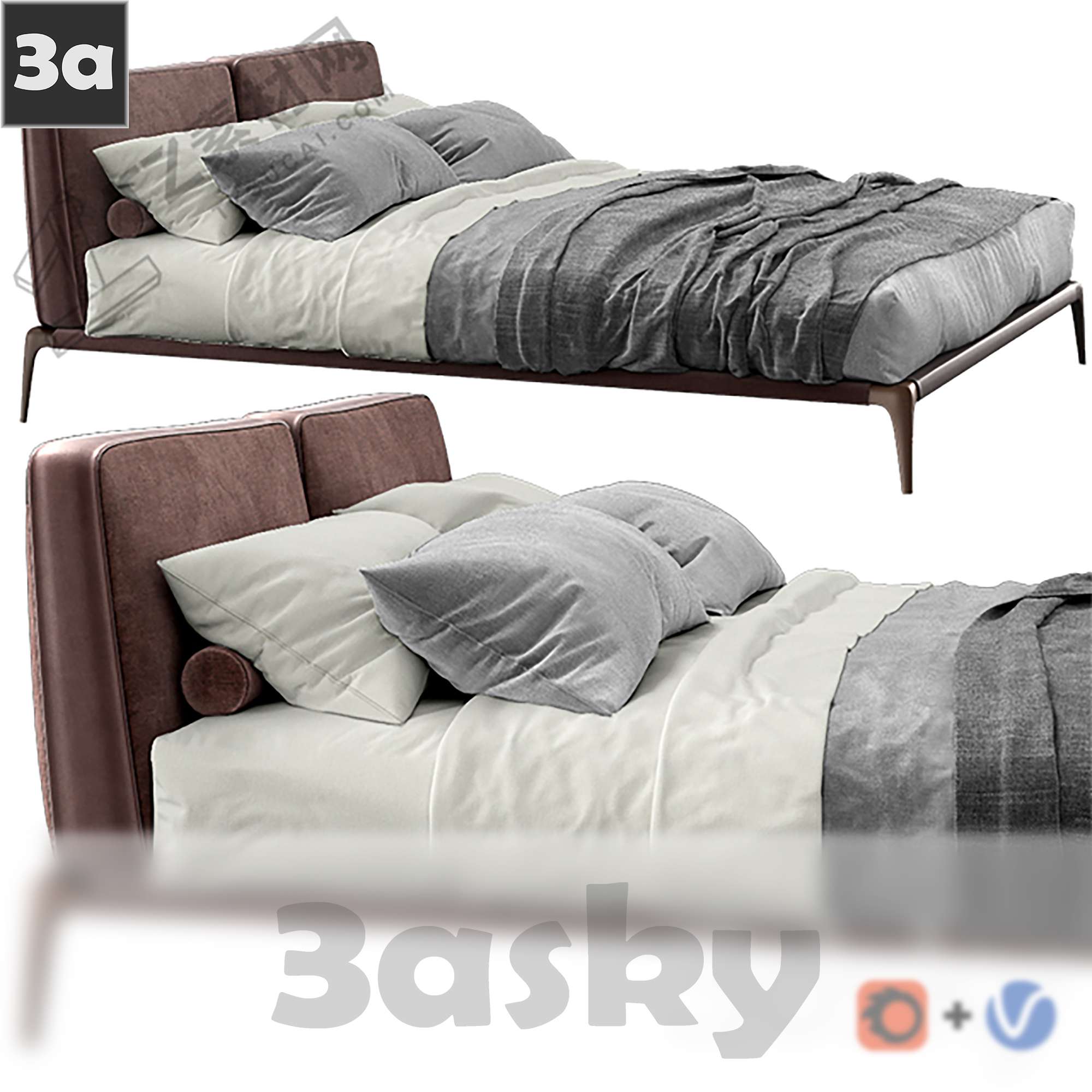 This 3D model showcases a modern bed designed for interior design and architectural visualization projects. The model is created using 3DS MAX software and is ideal for adding a touch of elegance to your virtual spaces. Explore the intricate details and craftsmanship of this modern bed for your creative projects.