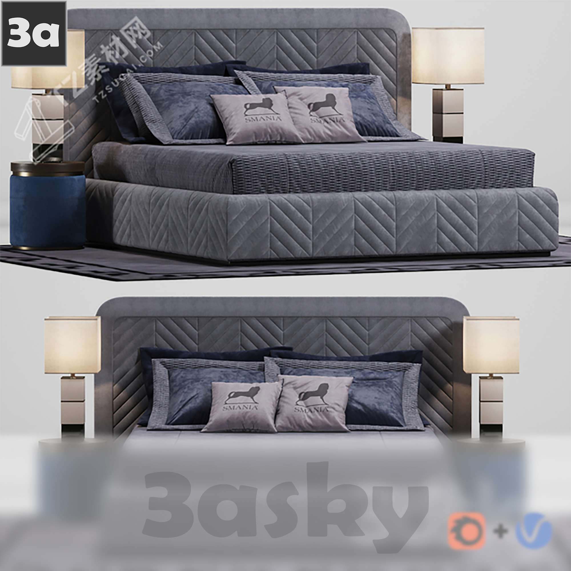 This 3D model showcases a modern bed, ideal for interior design and architectural visualization projects. The detailed design and high-quality rendering make it a perfect addition to your 3D furniture collection. Enhance your projects with this modern bed model.