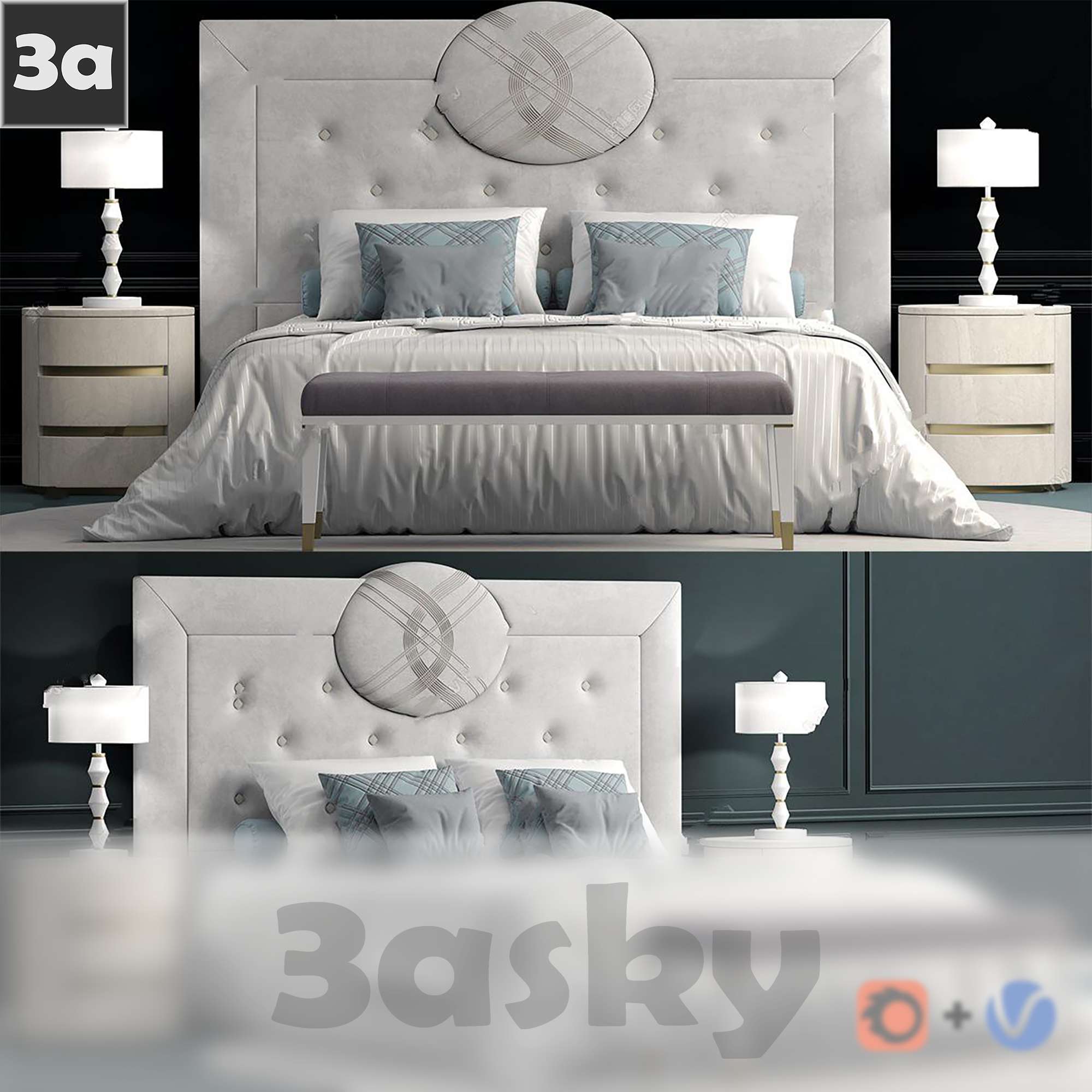 This 3D model showcases a modern bed designed for interior design and architectural visualization projects. The detailed design and realistic textures make it a perfect addition to any 3D scene. Created using 3DS MAX software, this furniture model is ideal for showcasing bedroom furniture in a realistic and visually appealing way.