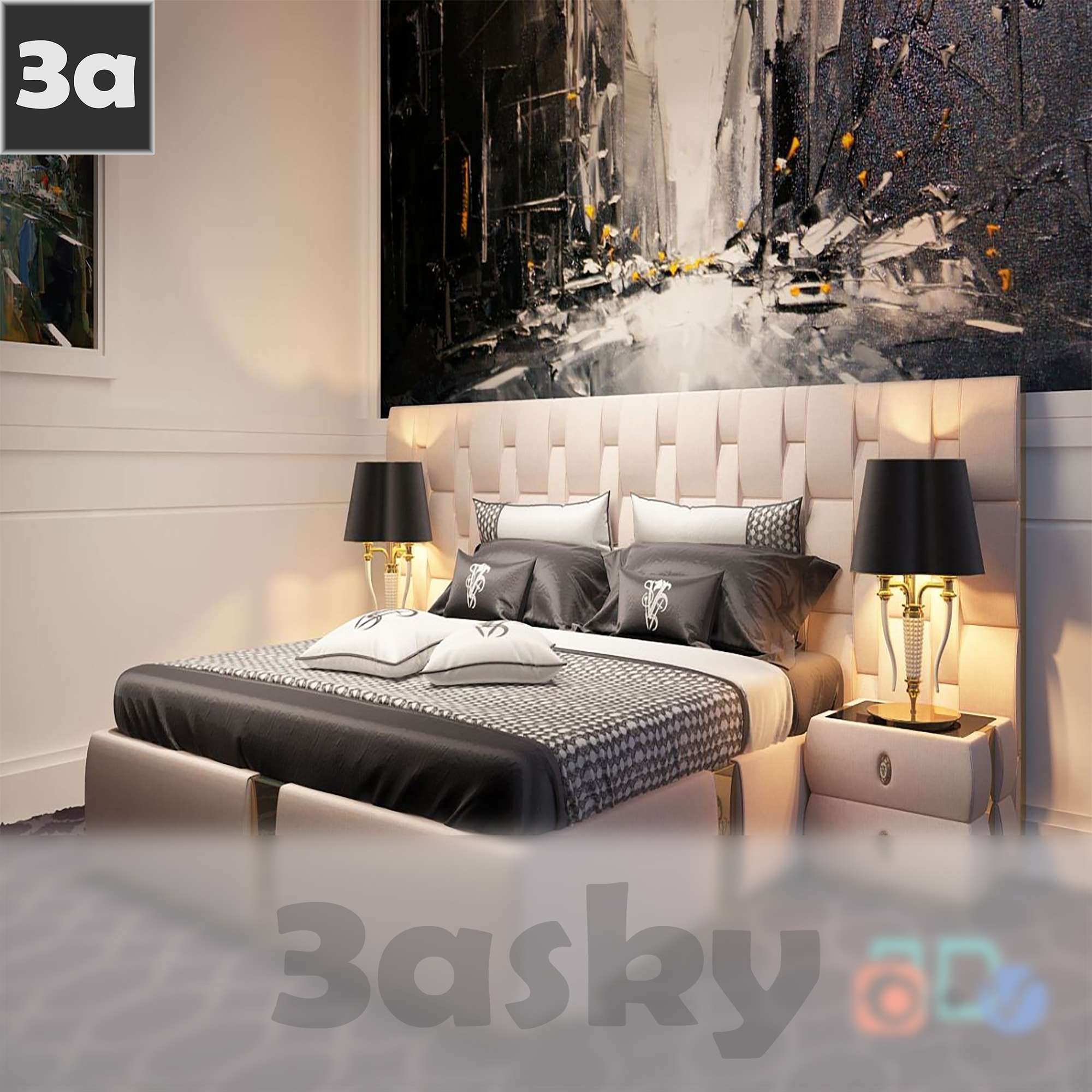 This 3D model features a modern bed furniture design suitable for interior design projects. The file is created in 3DS MAX and offers high-quality details for realistic visualization. Perfect for bedroom scenes and home decor projects.
