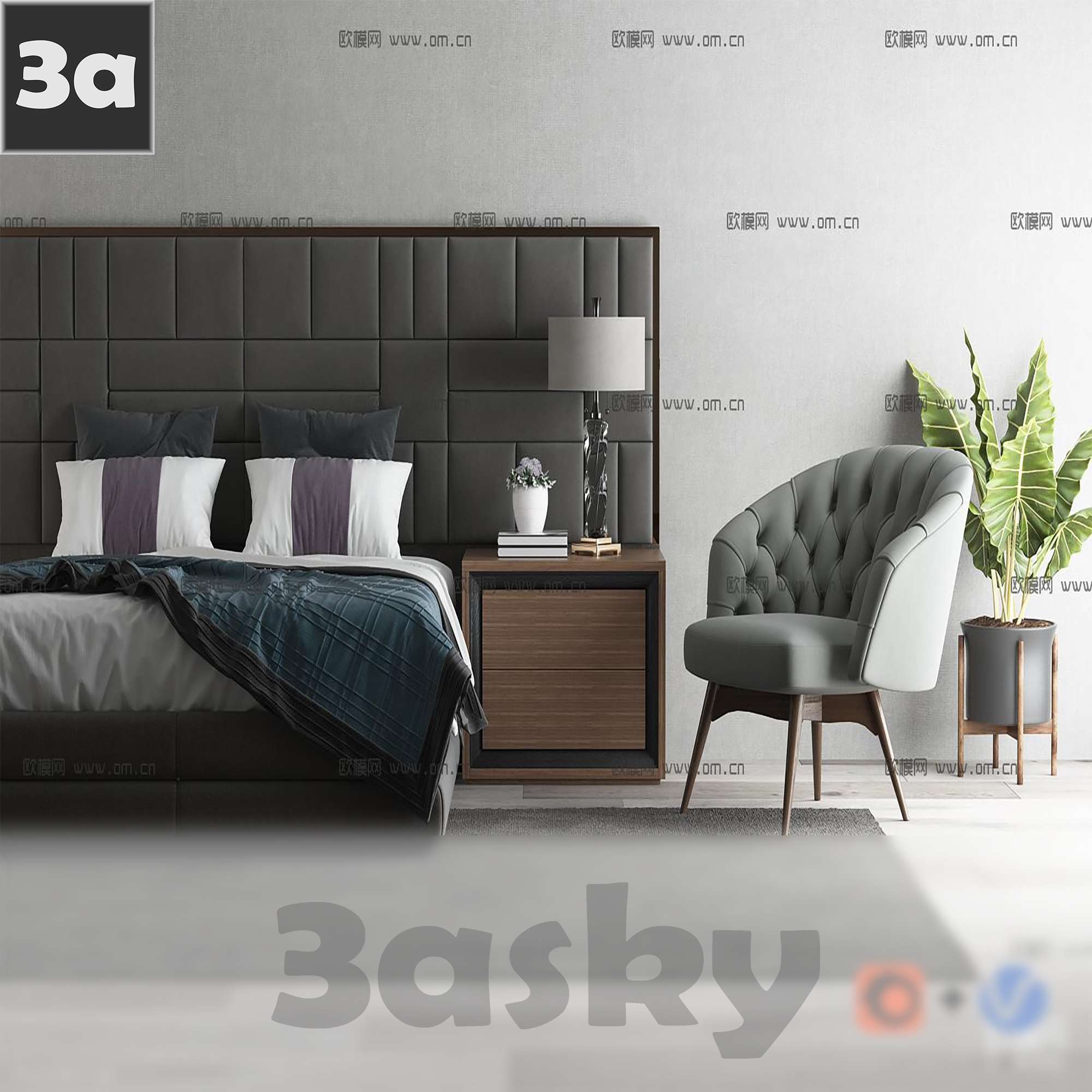 This 3DS MAX furniture model features a modern bed design. The sleek and contemporary style of the bed makes it a perfect addition to any modern bedroom setting. The 3D rendering showcases the intricate details and craftsmanship of the bed, highlighting its elegant and stylish appearance. Explore this 3D model to get a closer look at the design and envision how it can enhance your interior space.