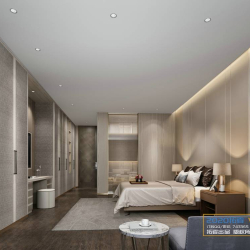 This 3D scene showcases a modern bedroom interior design created using 3DS MAX software. The scene features detailed furniture and a contemporary layout, perfect for interior visualization projects. Explore the high-quality rendering and design elements in this modern bedroom setting.
