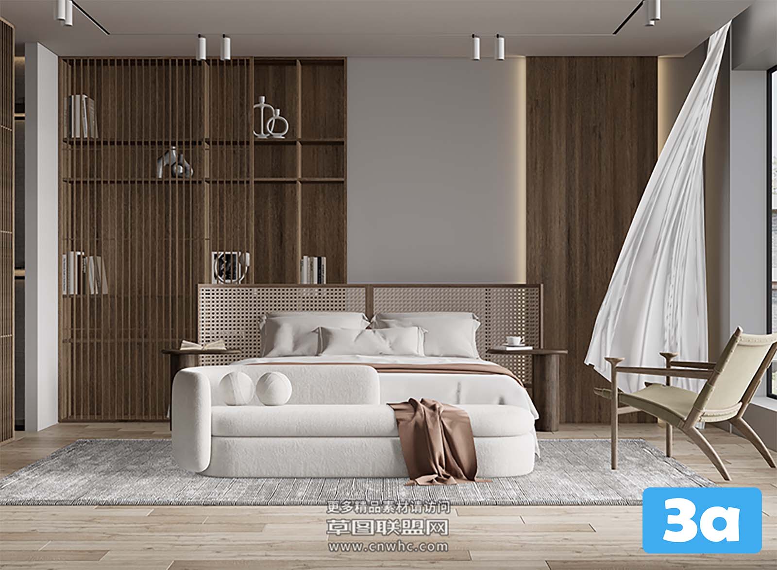 This 3D scene showcases a modern bedroom design created in SketchUp. The scene features contemporary furniture and a stylish layout. Explore the details and get inspired for your own interior design projects.
