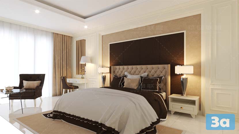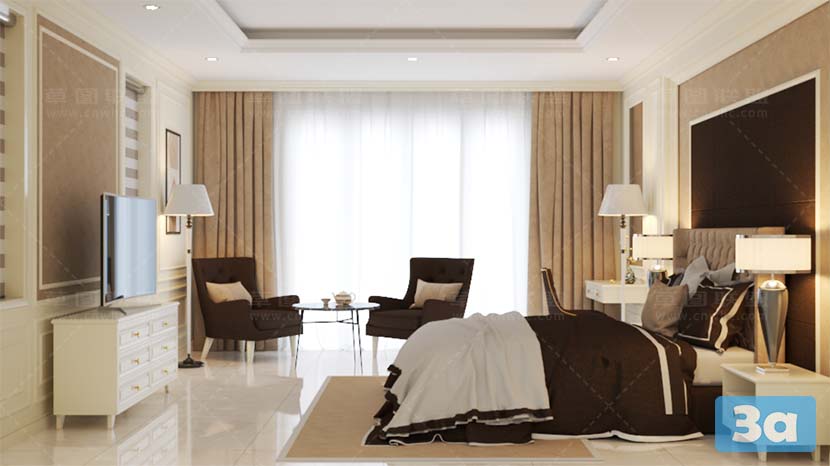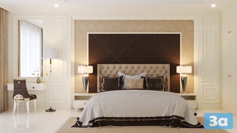 This 3D scene showcases a modern bedroom design created using SketchUp and V-Ray rendering. The room features contemporary furniture, a stylish color palette, and a well-thought-out lighting setup. Explore the details of this interior design for inspiration and ideas for your own projects.