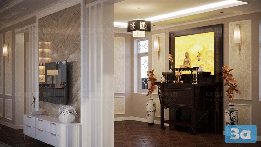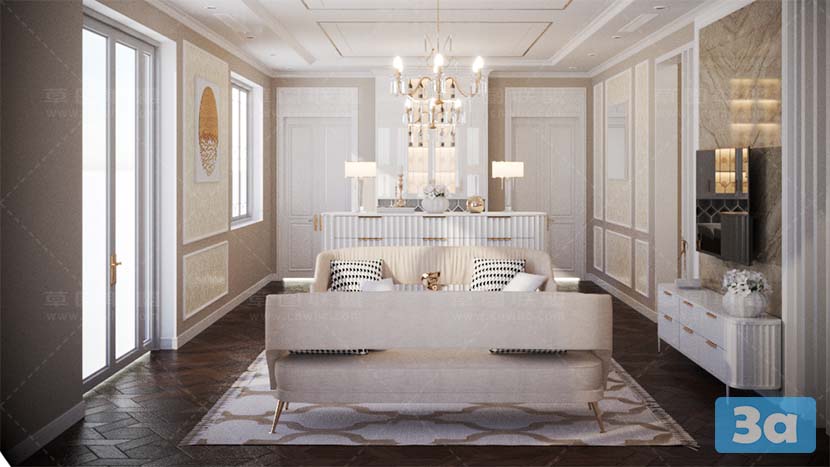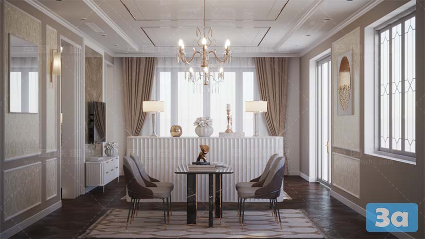This 3D scene showcases a modern bedroom design created using SketchUp and V-Ray rendering. The interior features contemporary elements and stylish decor, providing inspiration for interior designers and enthusiasts alike.