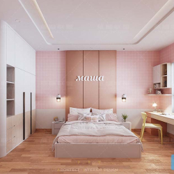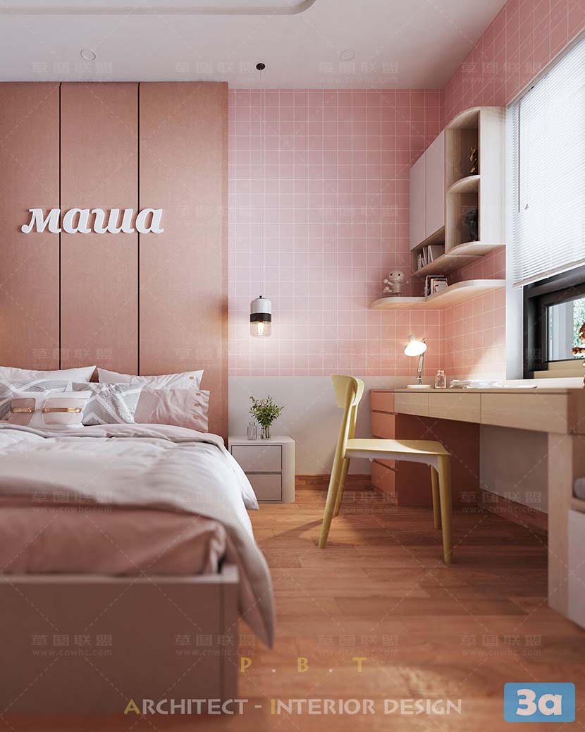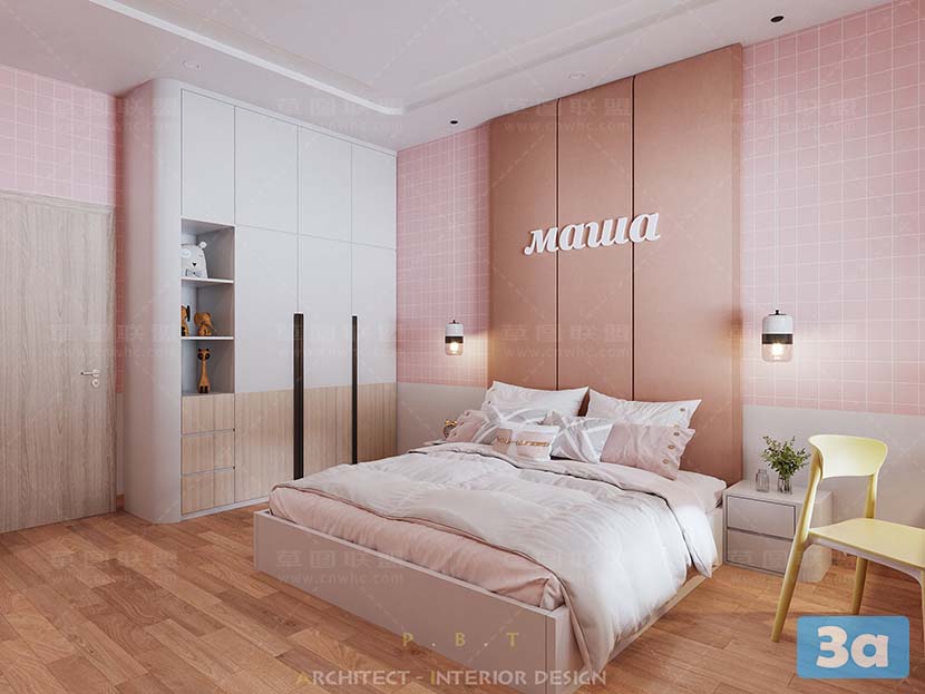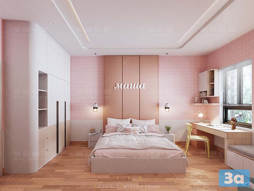 This 3D scene showcases a modern bedroom design created using SketchUp and V-Ray rendering. The interior features contemporary elements and stylish decor, providing inspiration for your own design projects. Explore the details of this beautifully crafted bedroom space.