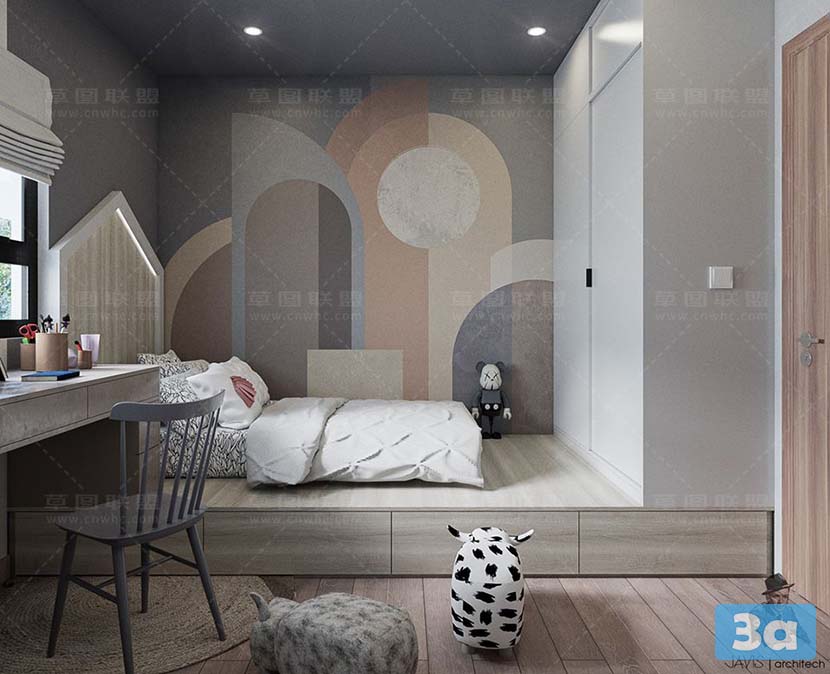 This 3D scene showcases a modern bedroom design created using SketchUp and V-Ray rendering. The room features contemporary furniture, stylish decor elements, and a cozy ambiance. Explore the intricate details and design choices in this visually appealing interior setting.