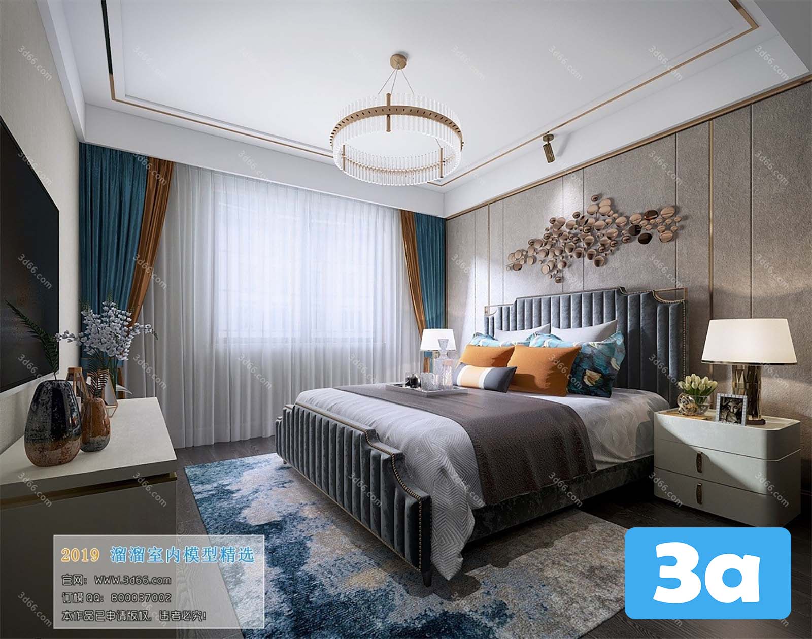This 3D scene showcases a modern bedroom design with stylish furniture and interior layout. Explore the details and get inspired for your own interior design projects.