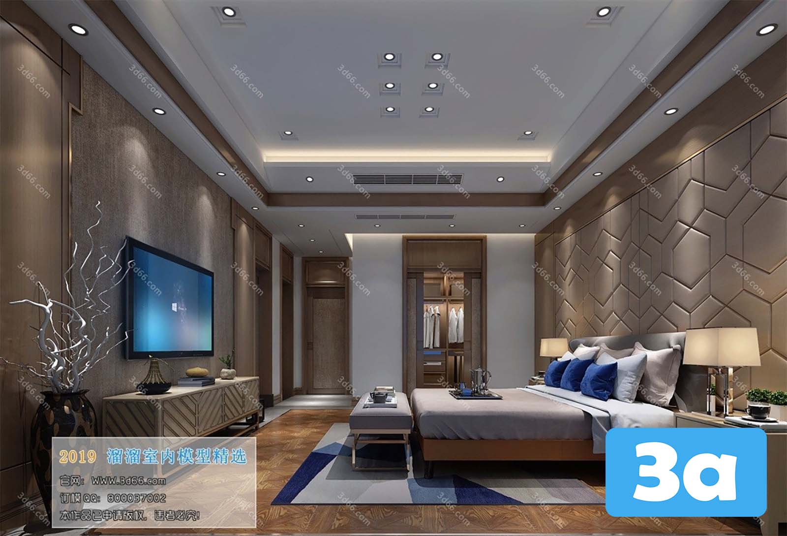 This 3D scene showcases a modern bedroom design with stylish furniture and interior layout. Explore the details and layout of this contemporary bedroom setting.