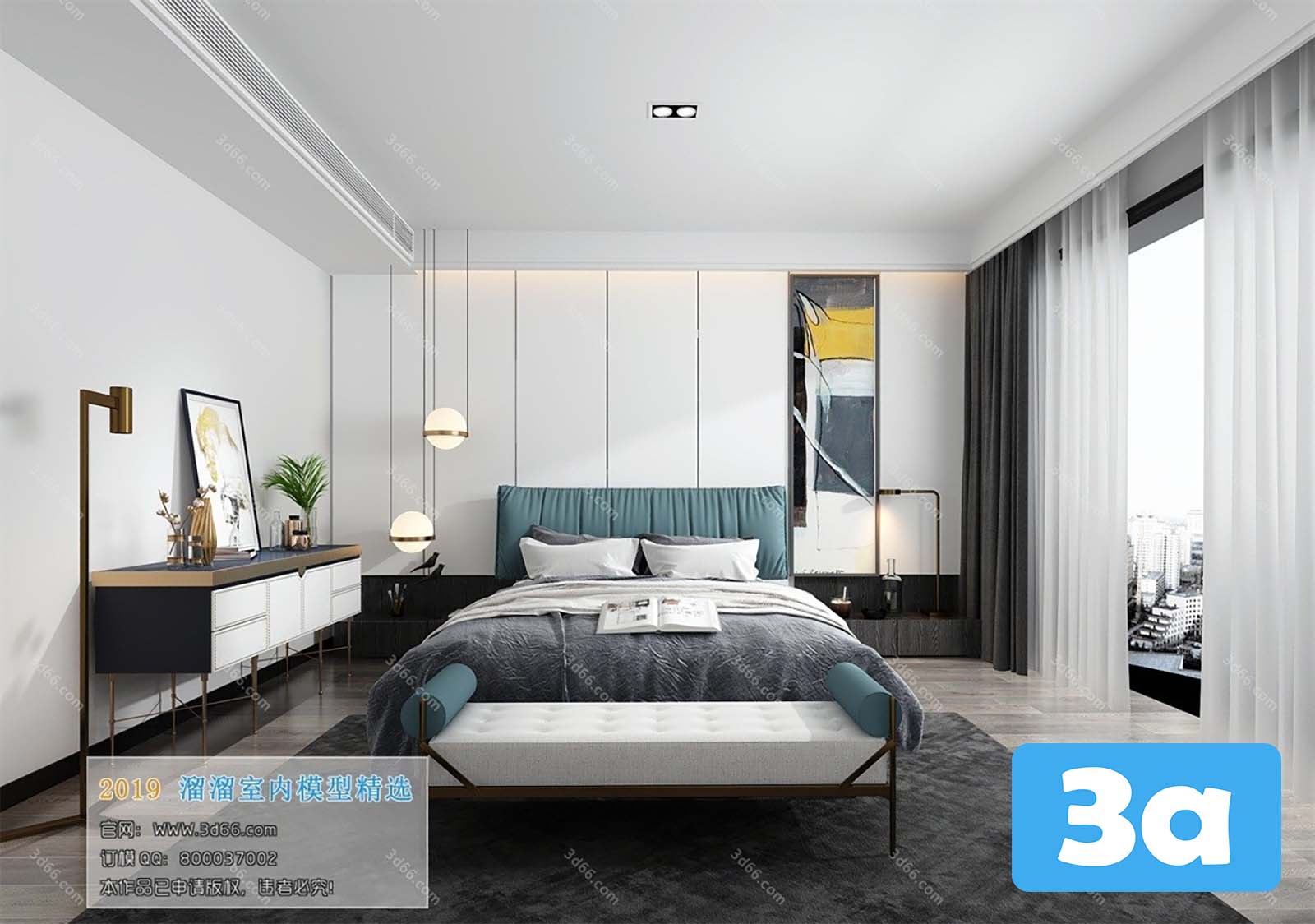 This 3D scene features a modern bedroom interior with stylish furniture and decor. The design is sleek and contemporary, perfect for showcasing interior design concepts. Explore the details of this bedroom scene in SketchUp format.