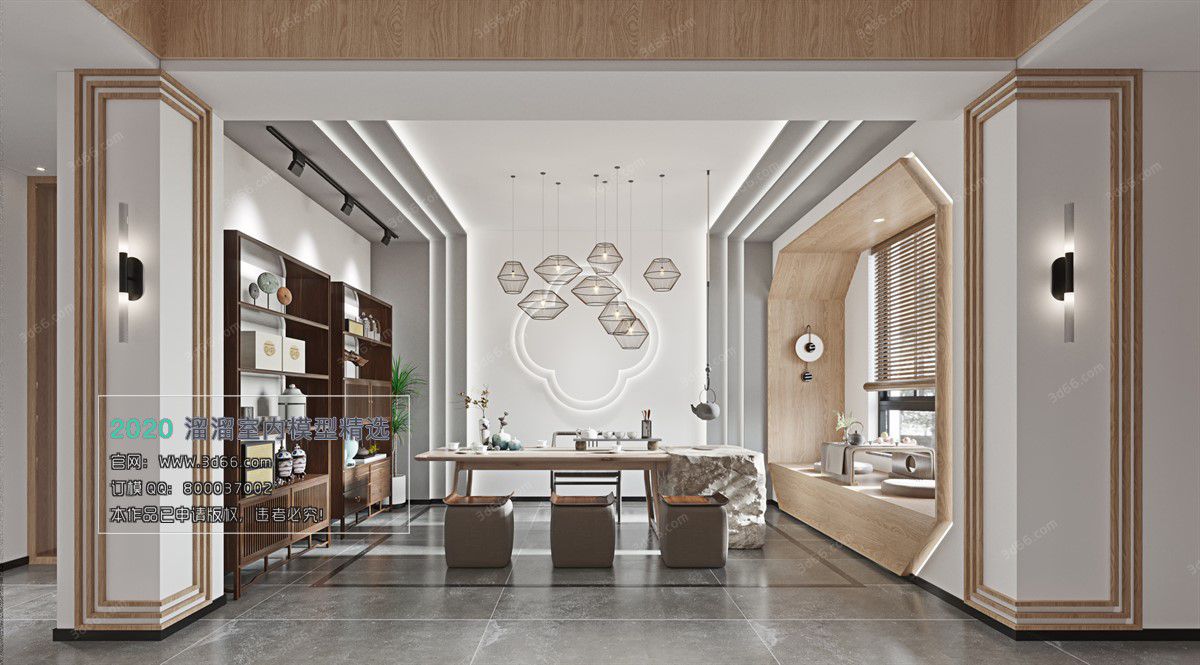 This 3D scene showcases a modern Chinese style Corona model, perfect for home decoration. The design features intricate details and a modern aesthetic, blending traditional Chinese elements with contemporary design. Explore this unique piece in detail to enhance your interior design projects.