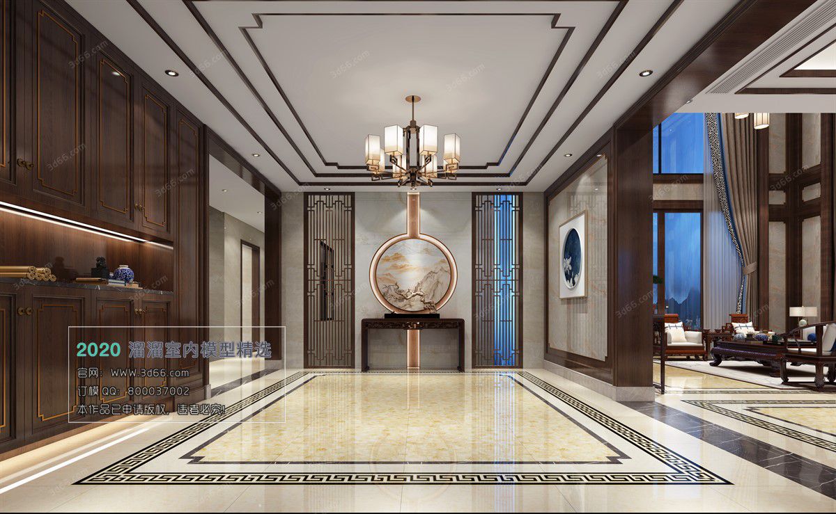 This file showcases a modern Chinese style Vray model 007, perfect for home decoration. The design features intricate details and a blend of modern and traditional Chinese elements. Created using 3DS Max, this 3D scene is ideal for interior design projects.