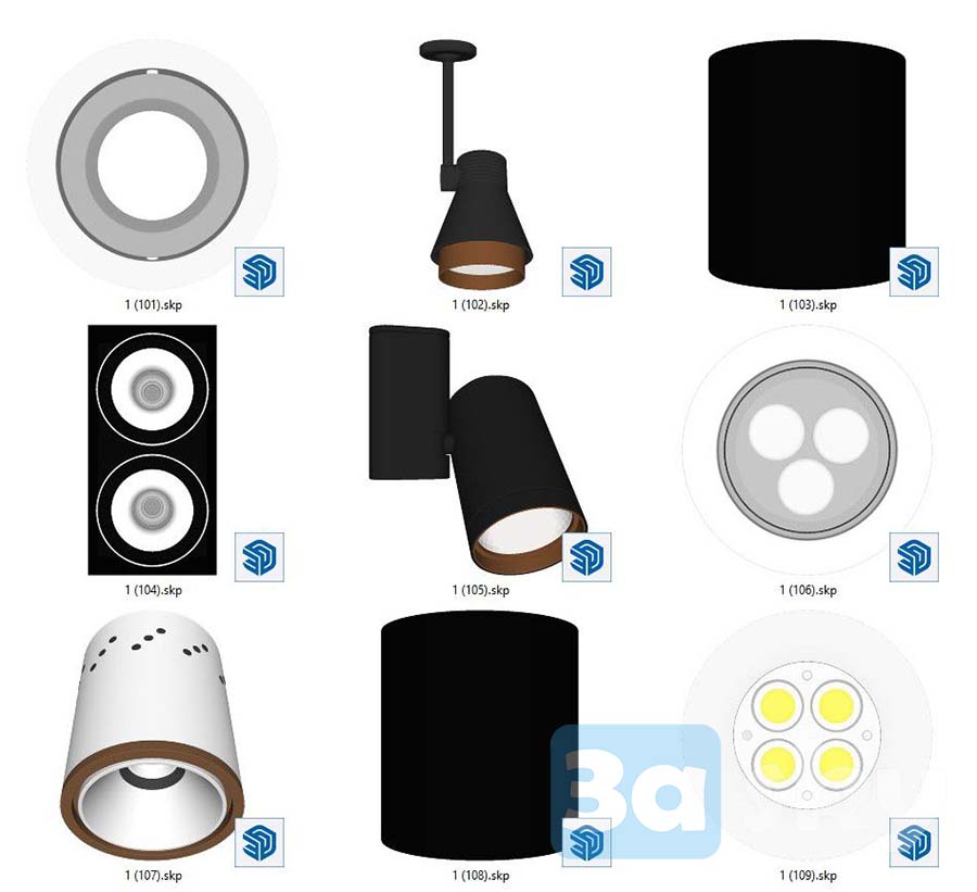 This 3D model showcases a modern downlight design in Sketchup lighting. It is a high-quality representation suitable for interior design projects. The downlight features a sleek and contemporary design, making it a versatile addition to various architectural visualizations.