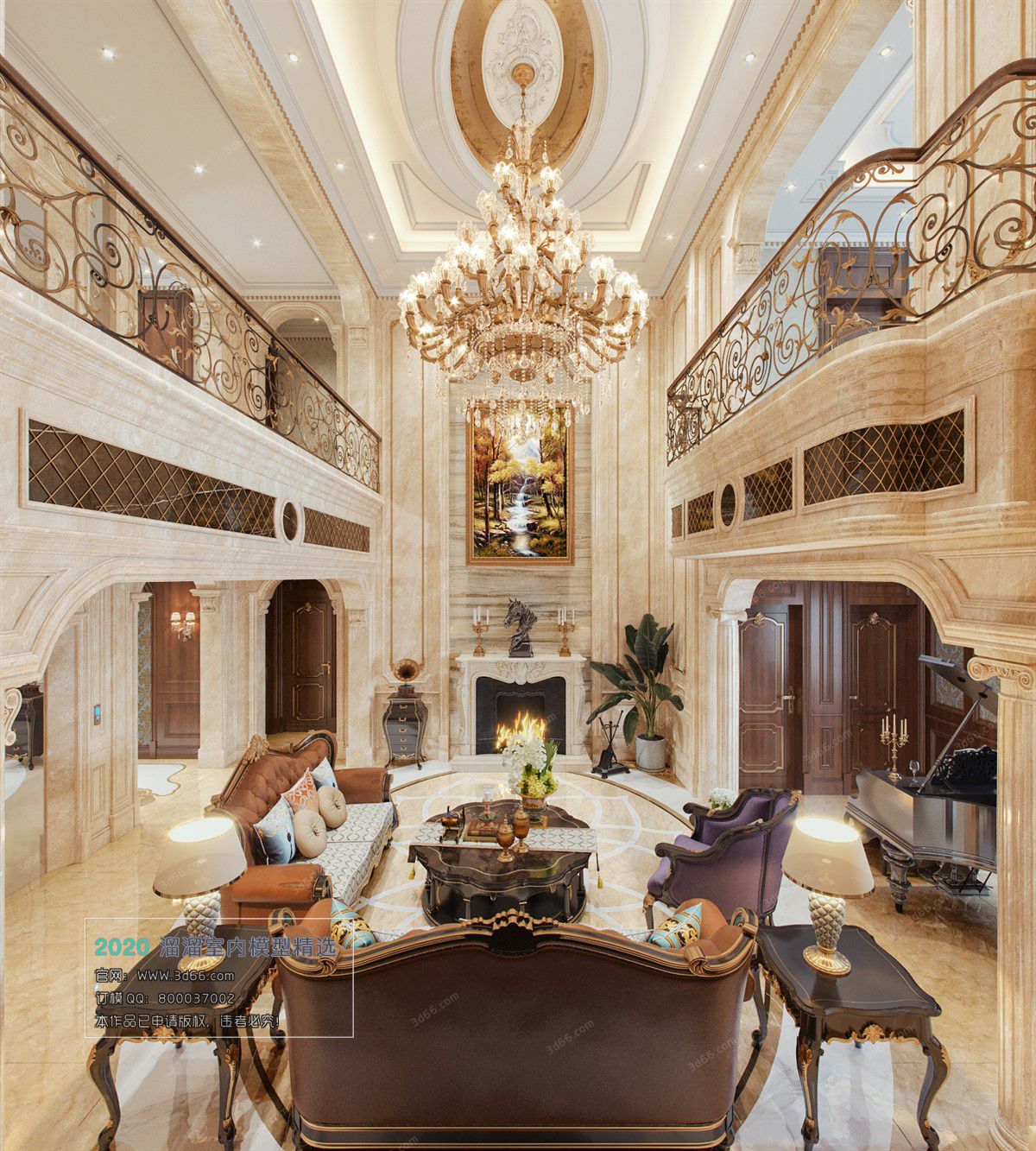 This 3D scene showcases a modern European style living room design rendered using Vray. The room features elegant furniture, intricate details, and a sophisticated color palette. Explore the beauty and functionality of this design for your own interior inspiration.