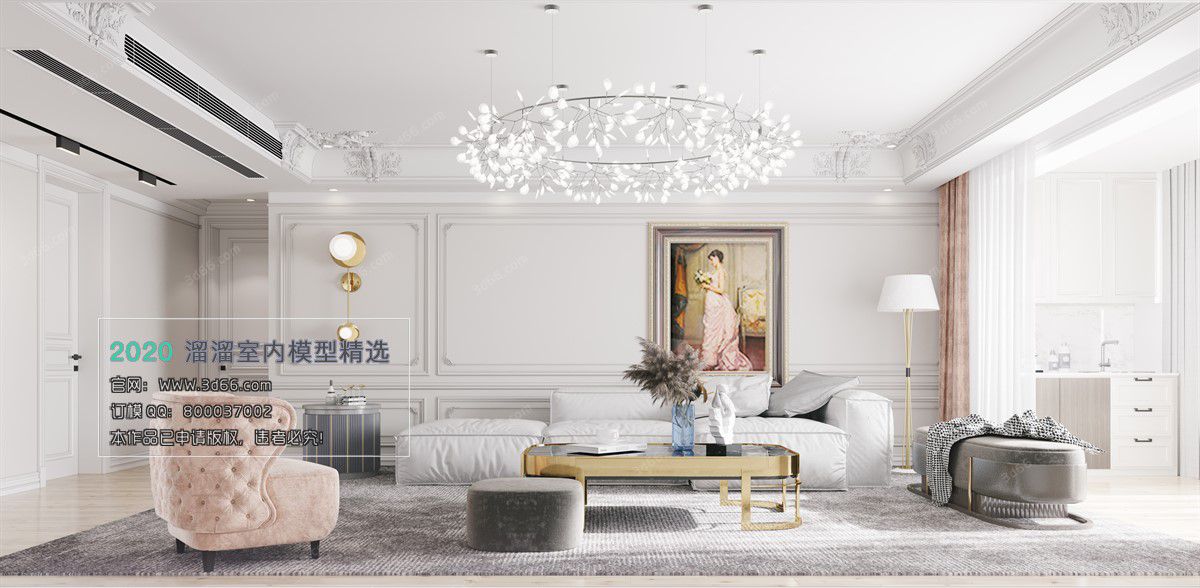 Modern European Style Living Room Vray Model 018