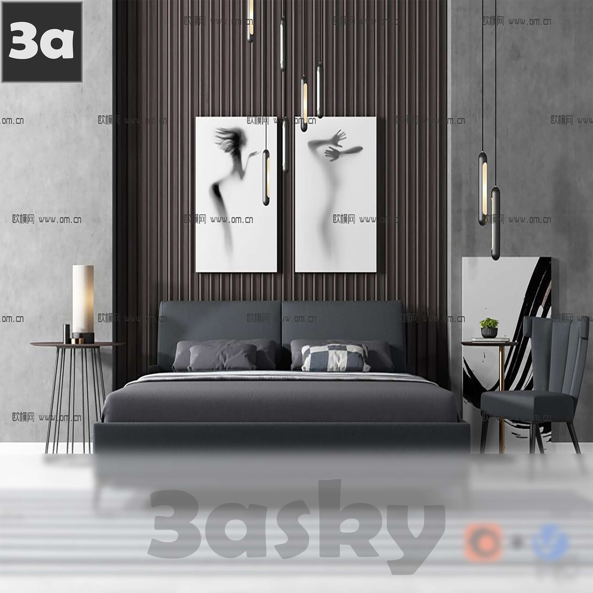 This 3D model showcases a modern furniture design, perfect for interior decor projects. The attention to detail and sleek design make it a versatile piece for various settings.