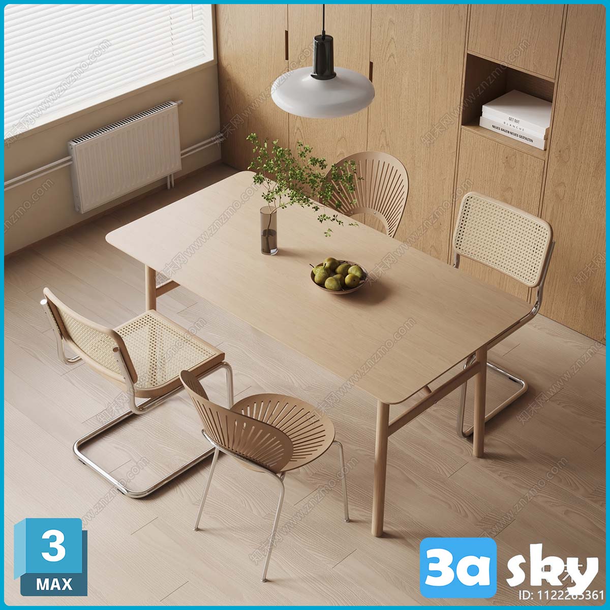 V_现代餐桌椅组合_水果果盘_植物摆件3D模型ID_1122265361.rar