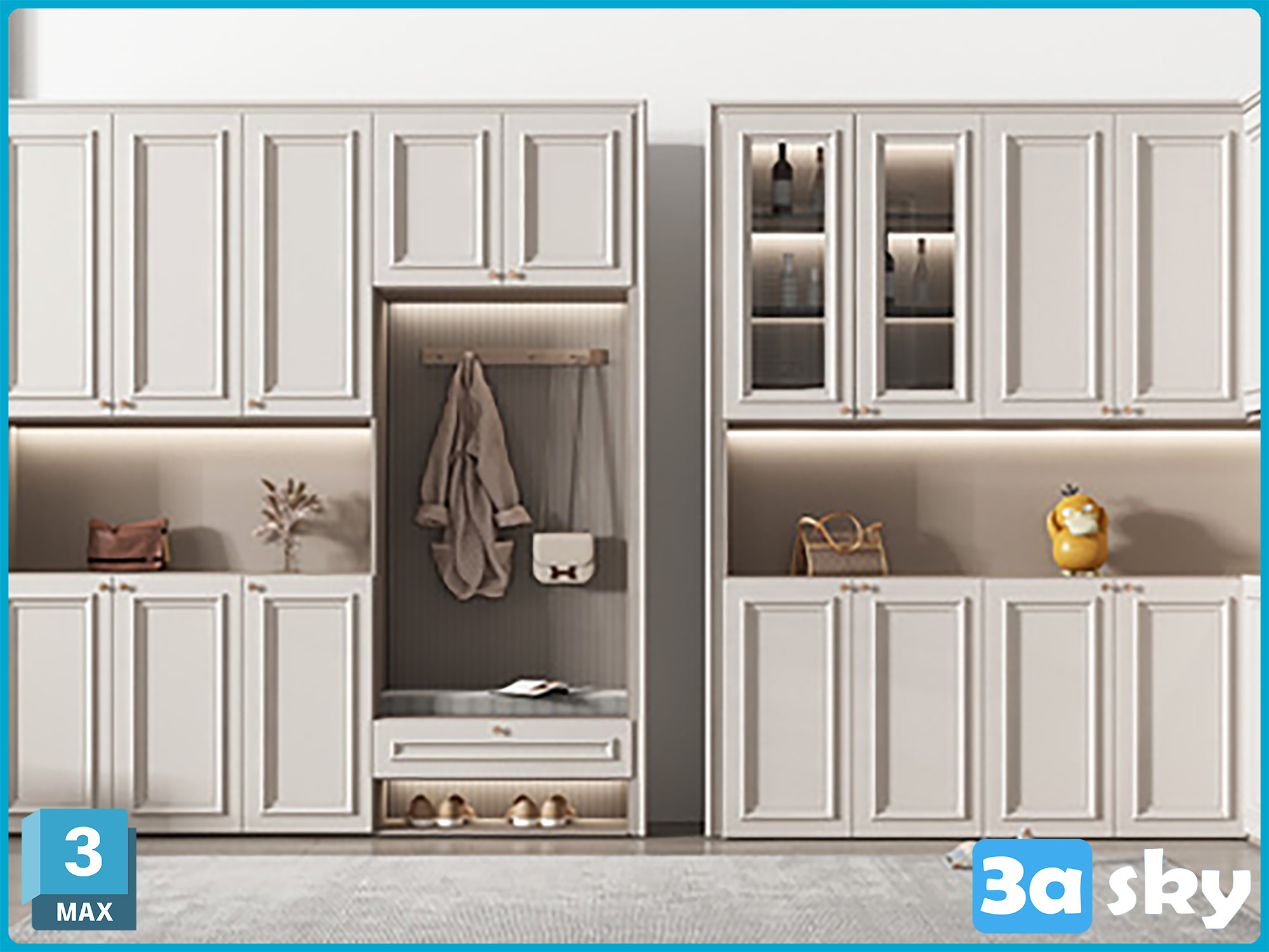 This 3D model showcases a modern furniture design, perfect for interior decoration and home decor projects. The intricate details and sleek design make it a versatile piece for various design styles.