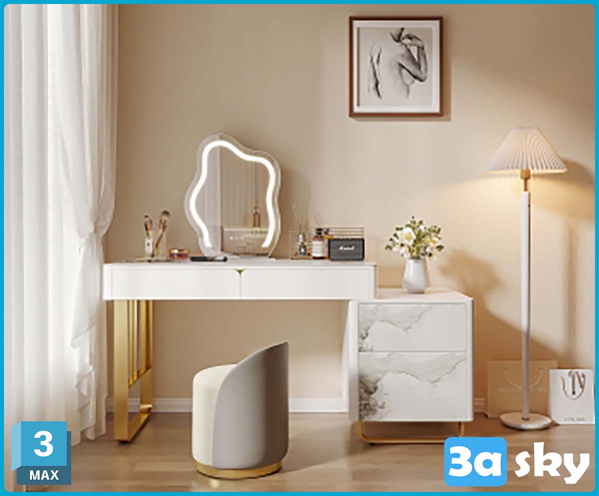 V_现代奶油风梳妆台妆凳组合化妆镜化妆台饰品摆件ID1136867528.zip