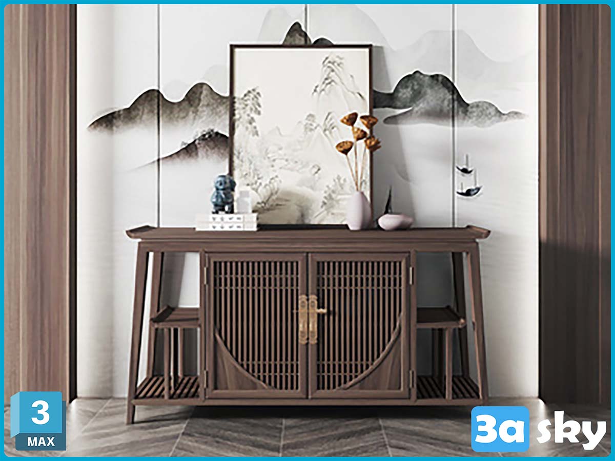 This 3D model showcases a modern furniture design created in 3DS MAX. The image provides a preview of the intricate details and style of the furniture piece, perfect for interior design and decor projects.