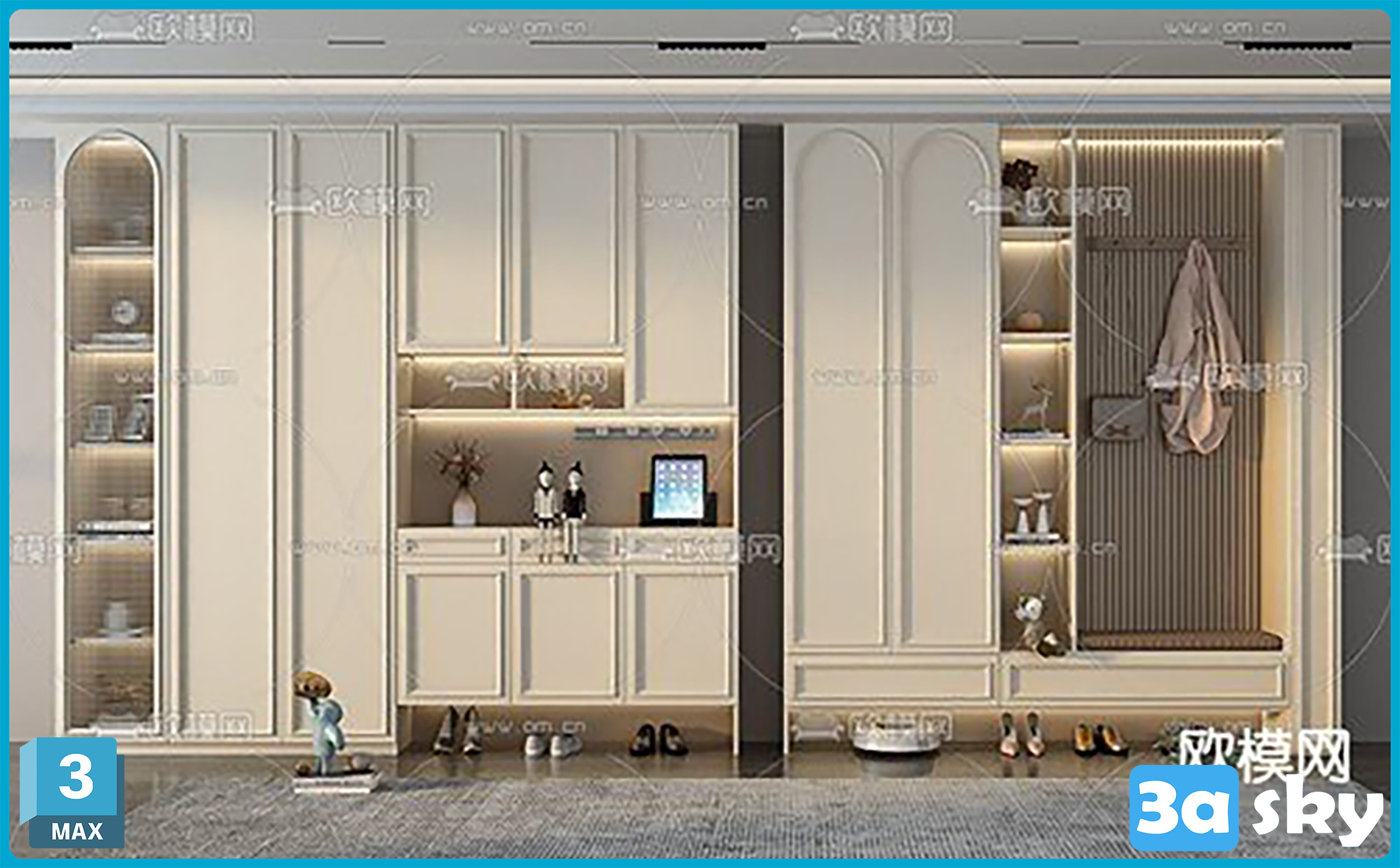This 3D model showcases a modern furniture design created in 3DS MAX. The image provides a preview of the intricate details and contemporary style of the furniture piece, making it ideal for interior decor projects and design inspiration.
