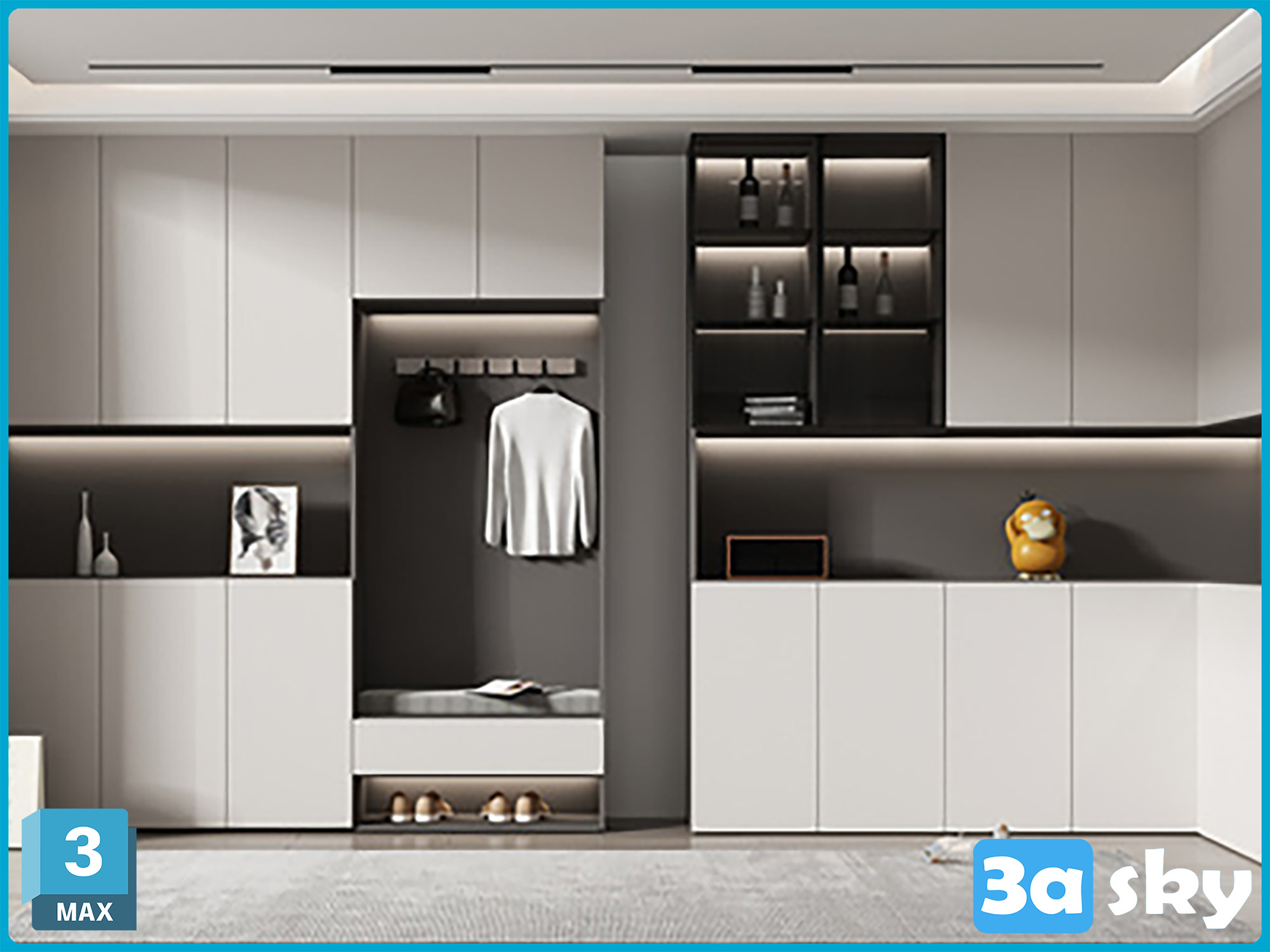 This 3D model showcases a modern furniture design created in 3DS MAX. The image provides a preview of the intricate details and sleek aesthetics of the furniture piece, making it a perfect addition to any contemporary interior design project.