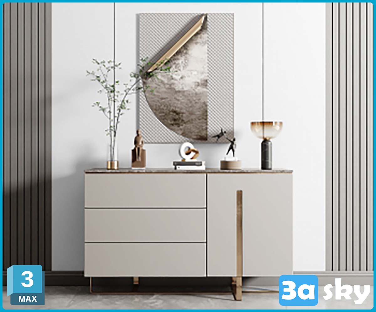 This 3D model showcases a modern furniture design created using 3DS MAX software. The image provides a preview of the intricate details and sleek aesthetics of the furniture piece, making it ideal for interior design projects and visualization purposes.
