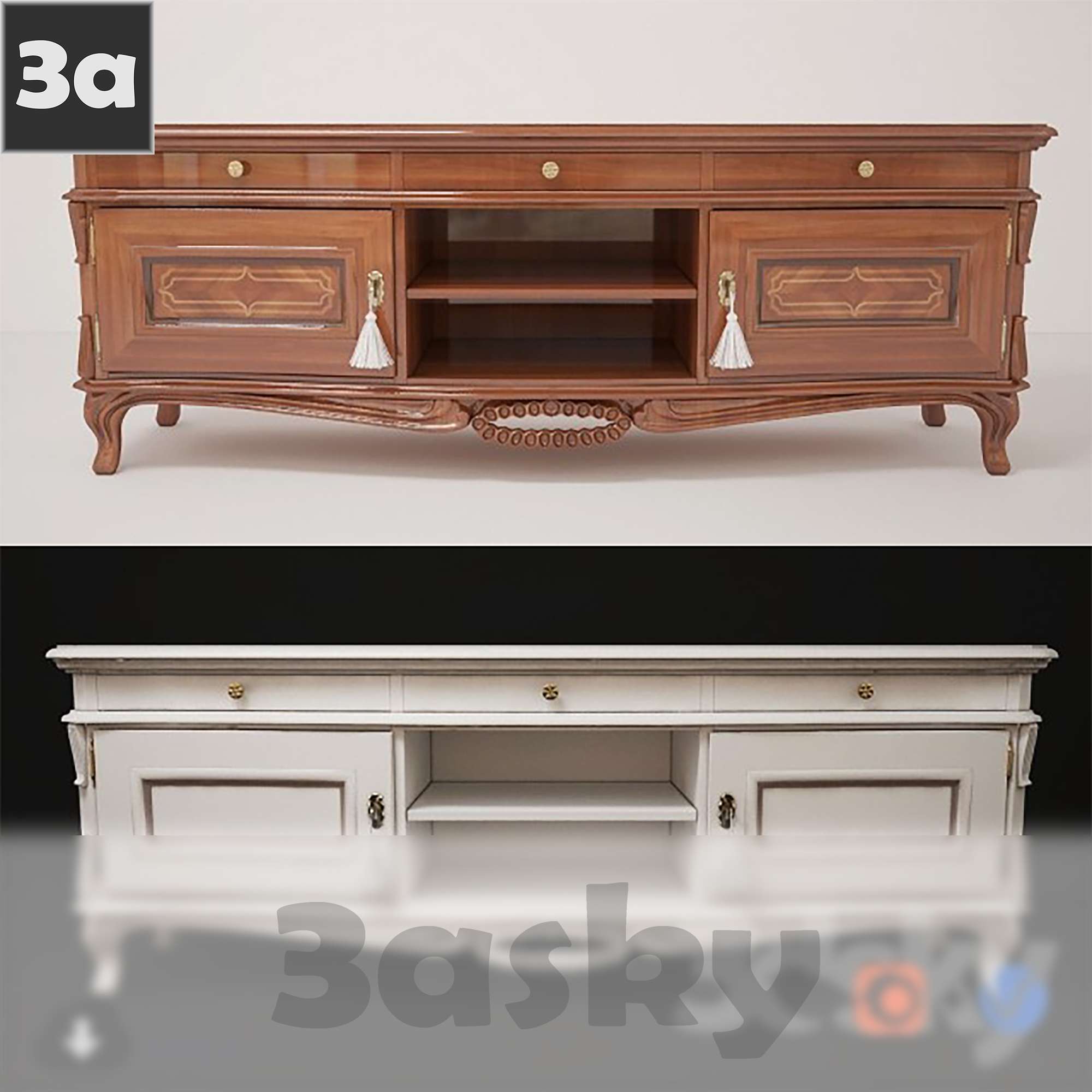 This 3D model showcases a modern furniture design created in 3DS MAX. The image provides a preview of the intricate details and sleek design of the furniture piece, perfect for interior design and home decor projects.