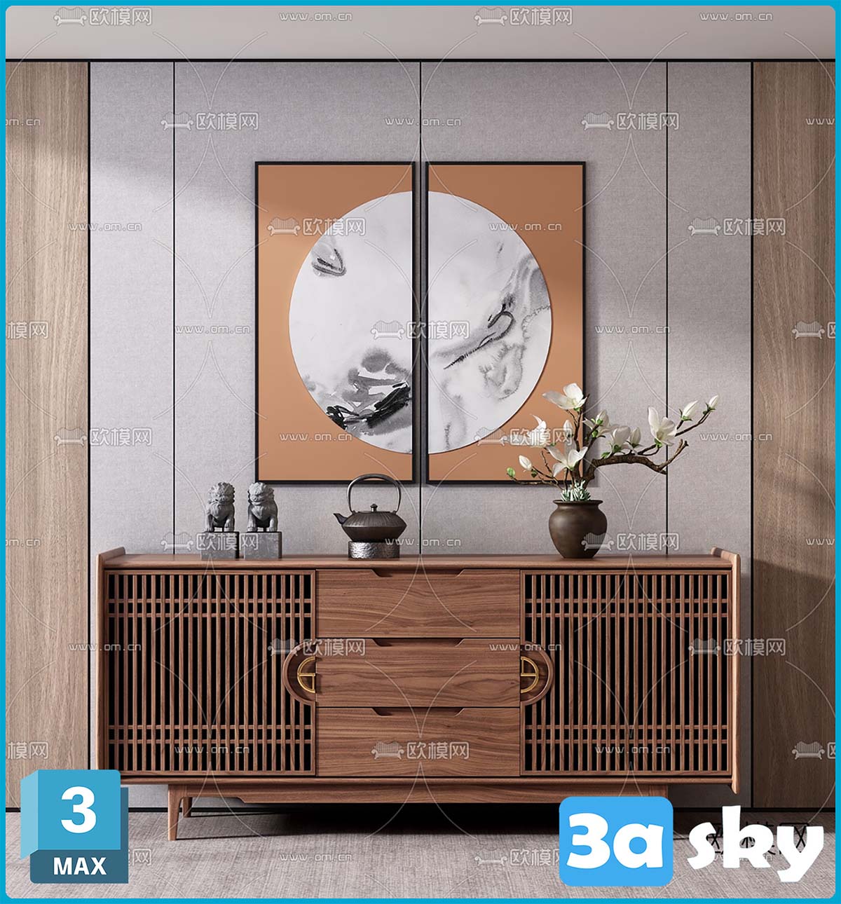 This 3D model showcases a modern furniture design created in 3DS MAX. The image provides a preview of the detailed modeling and textures used in the design. Perfect for interior design enthusiasts and those looking for inspiration for home decor projects.