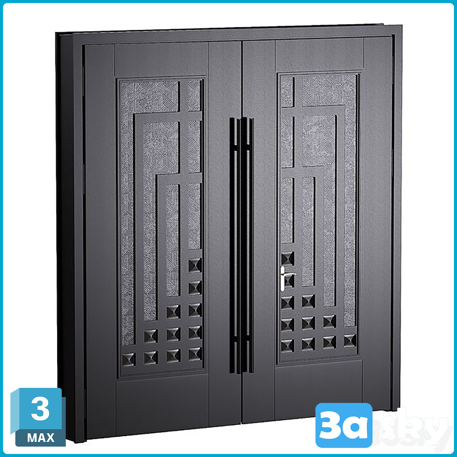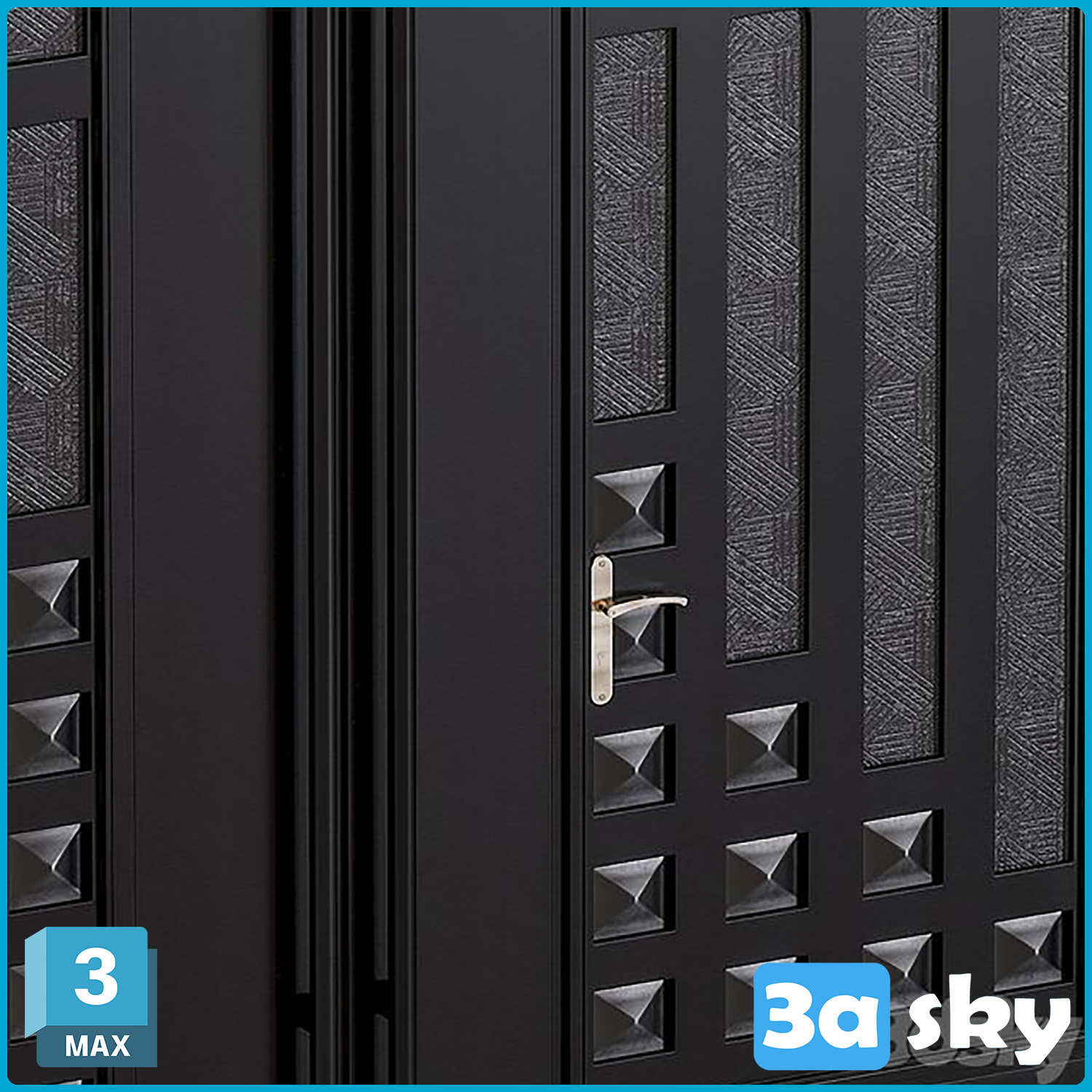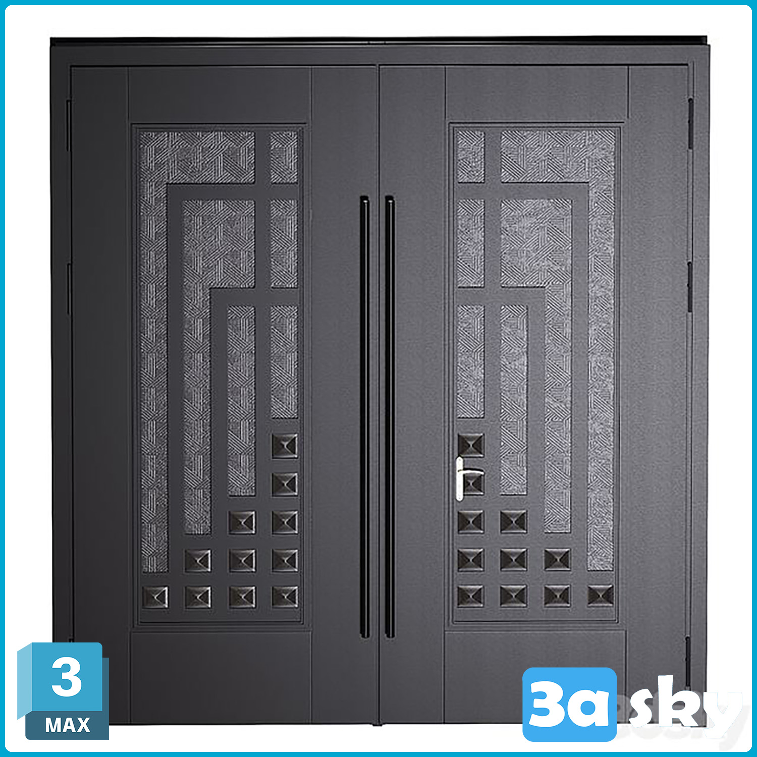 This 3D model features a modern house door design created in 3DS MAX. The architectural visualization showcases a contemporary and stylish door suitable for modern residential projects. The high-quality rendering highlights the intricate details and textures of the door, making it a perfect addition to any architectural design project.