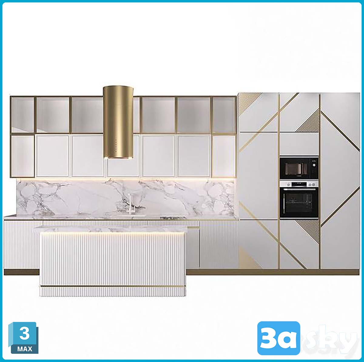 This 3D model features a modern kitchen design created in 3DS Max. The kitchen includes stylish furniture and appliances, perfect for interior design visualization projects. Explore the sleek and contemporary elements of this kitchen model.