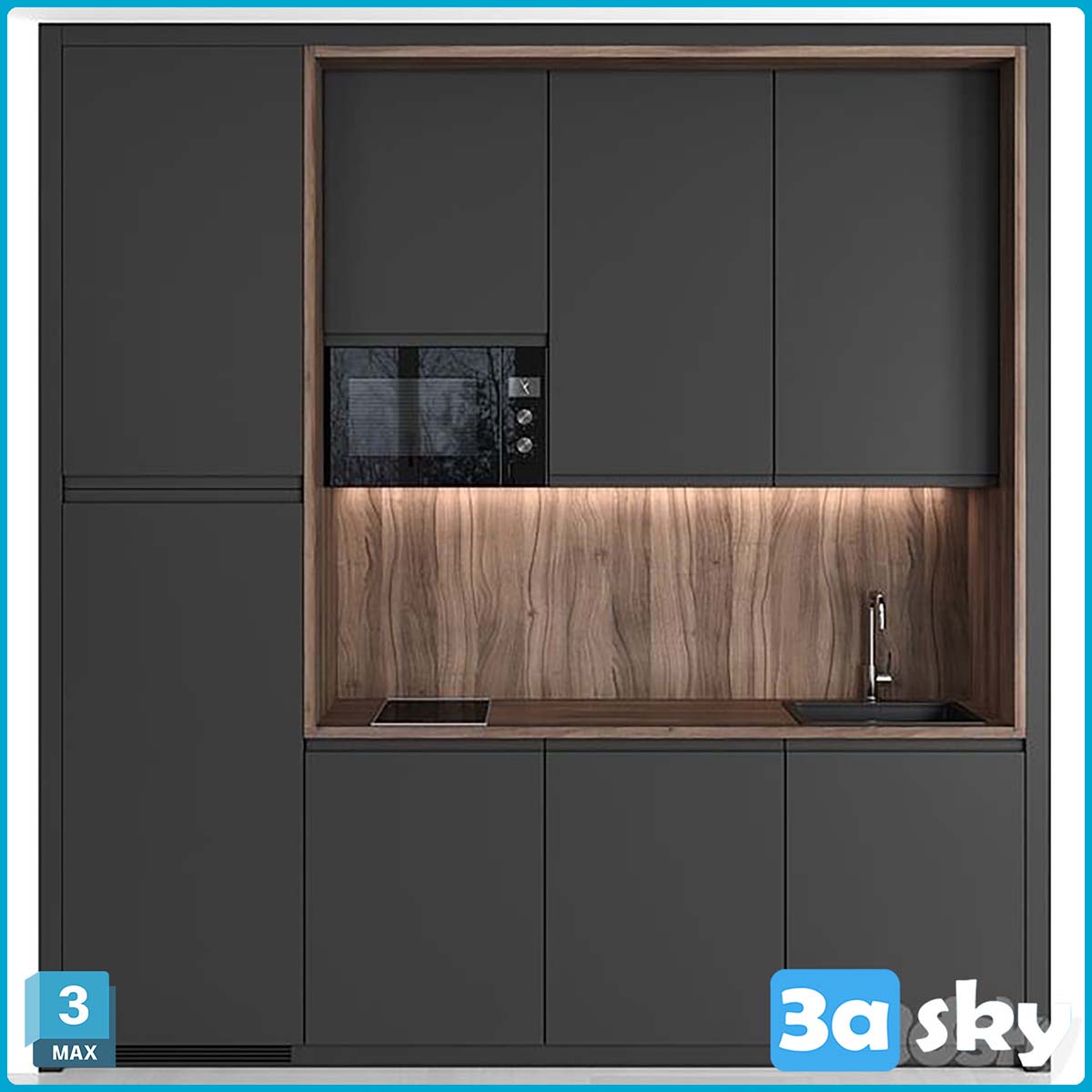 This 3D model showcases a small modern kitchen design. The layout features sleek and contemporary elements, perfect for interior design enthusiasts. Explore the functionality and aesthetic appeal of this kitchen design in detail.